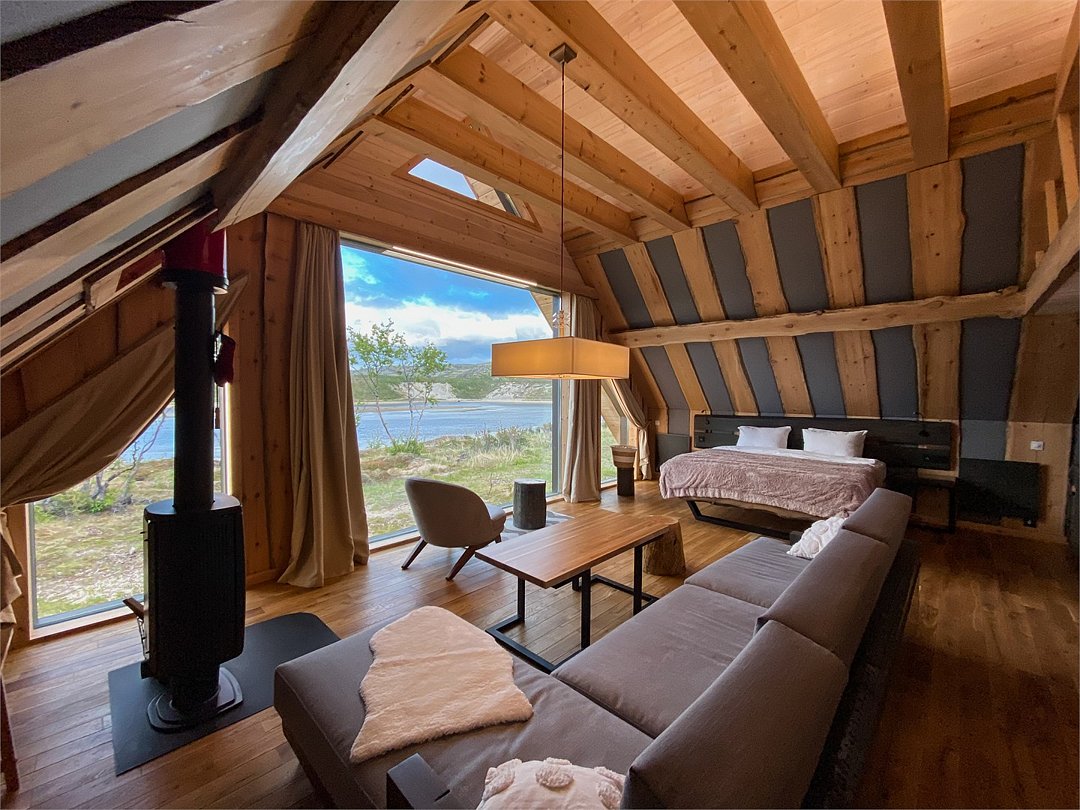 ШАЛЕ категории “Super люкс” расположены на берегу реки и из них открывается завораживающий панорамный вид на залив и потрясающую северную природу. ШАЛЕ отлично подойдет для отдыха семьей или в кругу друзей.
