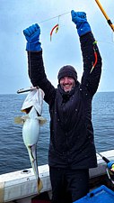 - Треска — круглый год, лучший клёв с марта по октябрь.