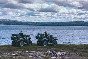Трансфер до озера осуществляется на высокопроходимых болотоходах и квадроциклах.