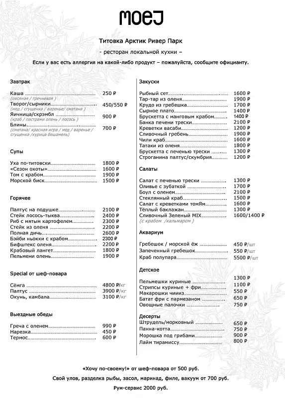 - завтрак в ресторане MOEJ;