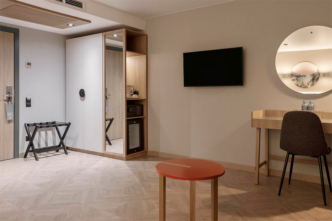 Wi-Fi, кондиционер, светильник, настольные лампы, фен, электронные замки, утюг, банные принадлежности, банные полотенца, тапочки, косметические средства, полутораспальная кровать, гладильная доска, диван, тумбы, шкаф для одежды, вешалки, письменный стол, зеркало, чайный набор, обслуживание номеров, сейф, чайник, унитаз, раковина, питьевая вода, отопление, душ, вид на город, стаканы, стул, цифровое тв, раскладной диван, внутренний телефон, телевизор с плоским экраном, мини-холодильник, номер для некурящих, оснащение для гостей с ограниченными возможностями, чайная станция, умная колонка, можно с питомцамиВ гостиничном номере