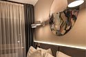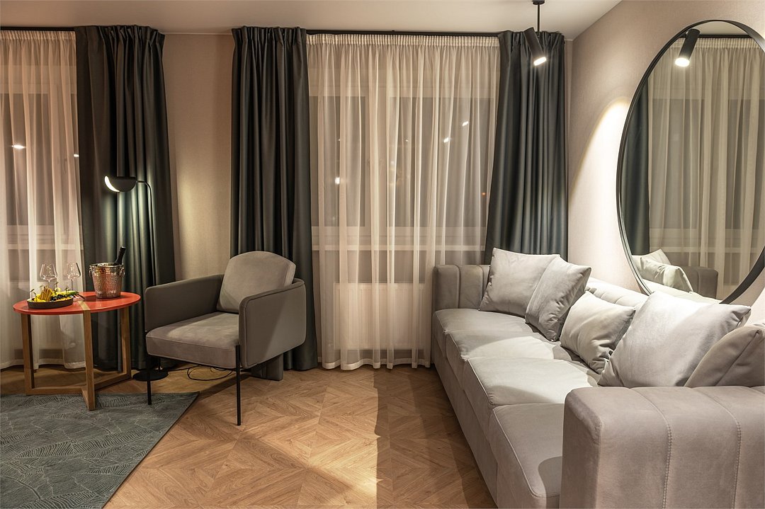 телевизор, Wi-Fi, кондиционер, светильник, настольные лампы, фен, электронные замки, утюг, ванна, халаты, банные полотенца, тапочки, косметические средства, двуспальная кровать, гладильная доска, кресла, тумбы, стулья, шкаф для одежды, вешалки, журнальный столик, письменный стол, зеркало, две комнаты, чайный набор, обслуживание номеров, сейф, чайник, унитаз, раковина, питьевая вода, гостиная зона, отопление, вид на город, паркет, стаканы, стул, цифровое тв, раскладной диван, внутренний телефон, мини-холодильник, москитная сетка, номер для некурящих, чайная станция, уборка номера, набор для приготовления чая и кофе, можно с питомцамиВ гостиничном номере