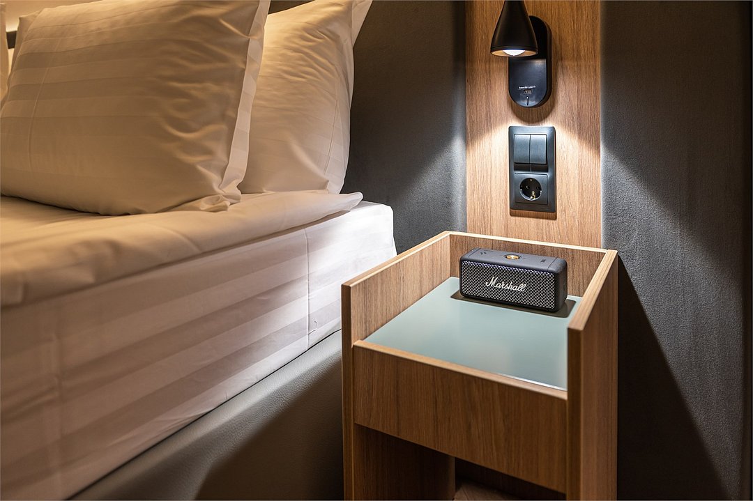 Wi-Fi, кондиционер, светильник, настольные лампы, фен, электронные замки, утюг, ванная комната, душевая кабина, банные принадлежности, банные полотенца, тапочки, косметические средства, полутораспальная кровать, гладильная доска, тумбы, шкаф для одежды, вешалки, зеркало, чайный набор, обслуживание номеров, сейф, чайник, унитаз, раковина, питьевая вода, отопление, душ, вид на город, стаканы, стул, внутренний телефон, телевизор с плоским экраном, мини-холодильник, номер для некурящих, чайная станция, умная колонка, можно с питомцамиВ гостиничном номере