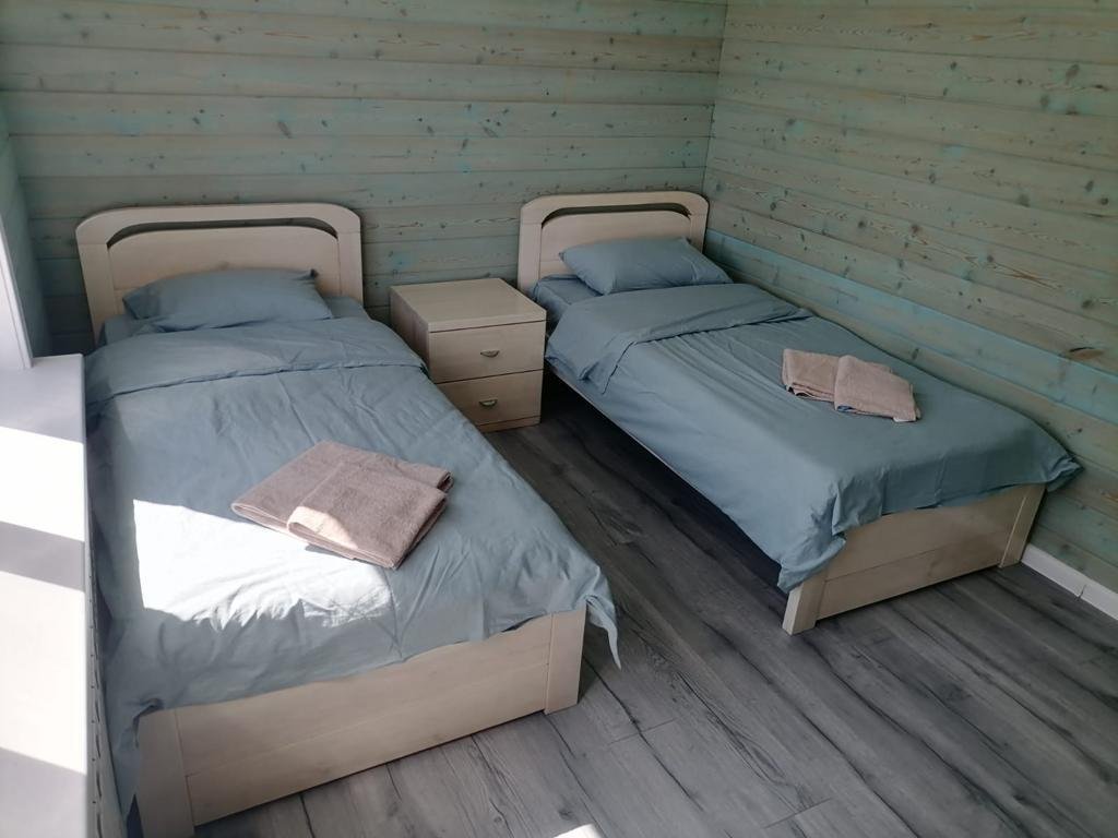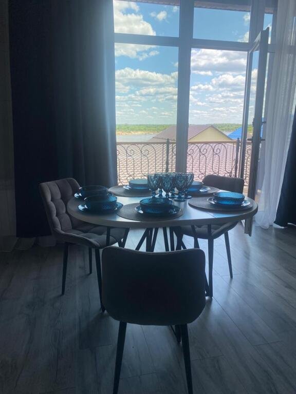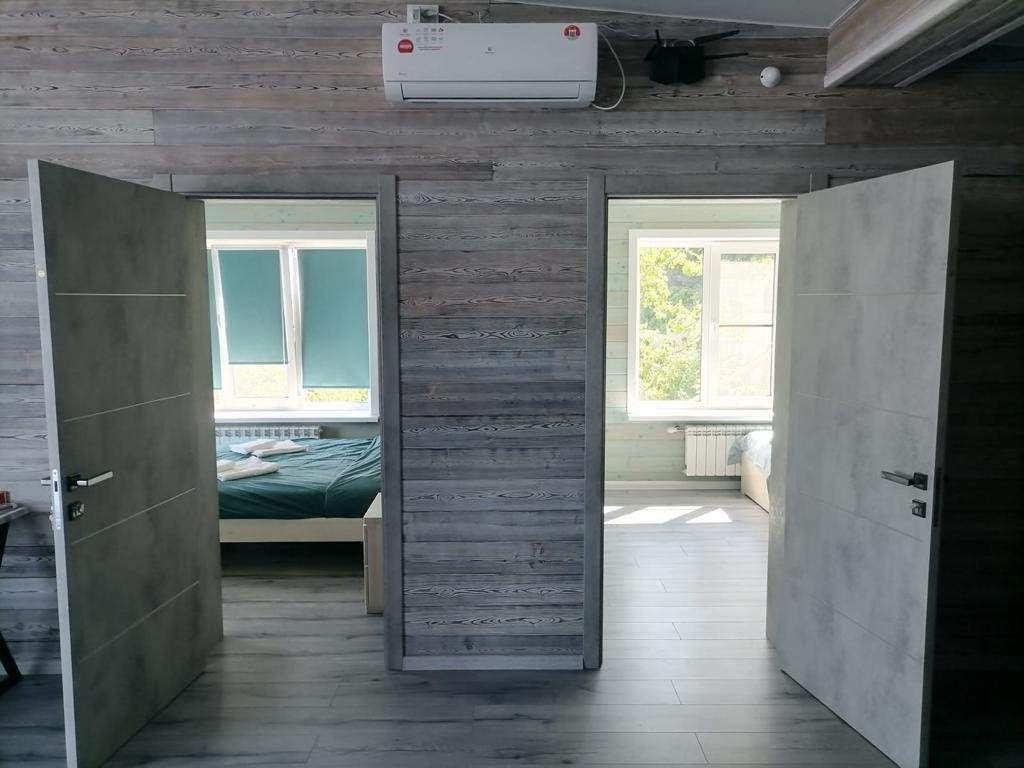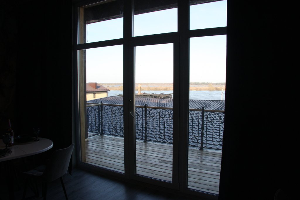 В каждом номере просторная кухня гостиная с диваном, спальня с двуспальной кроватью, и спальня с двумя односпальными кроватями. Санузел с душевой и сауной.Большая терраса с видом на Оку. Мангальная зона.