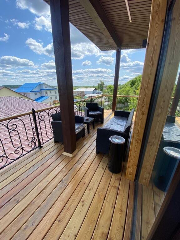 Добро пожаловать на уютную веранду, расположенную на третьем этаже Гостевого дома. Эта просторная веранда идеально подходит для тех, кто ищет комфортное место для отдыха на свежем воздухе. Веранда площадью 50 квадратных метров, с возможностью разместить до 10 человек. Здесь достаточно места для семейных встреч, дружеских посиделок или романтических вечеров. Веранда оформлена в стильном и современном дизайне с использованием натуральных материалов. Удобные кресла и столы создают атмосферу уюта и расслабления. С веранды открывается великолепный вид на реку и окружающую природу. Оборудованная кухня с комплектом посуды, гриль для барбекю, освещение и возможность подключения к Wi-Fi. Аренда возможна на срок от 3-х часов.