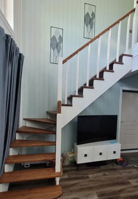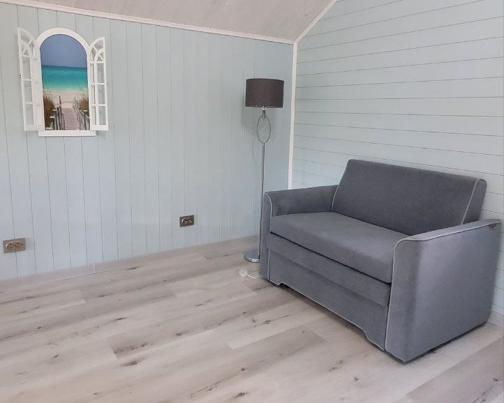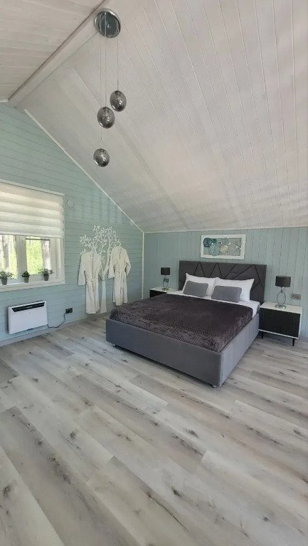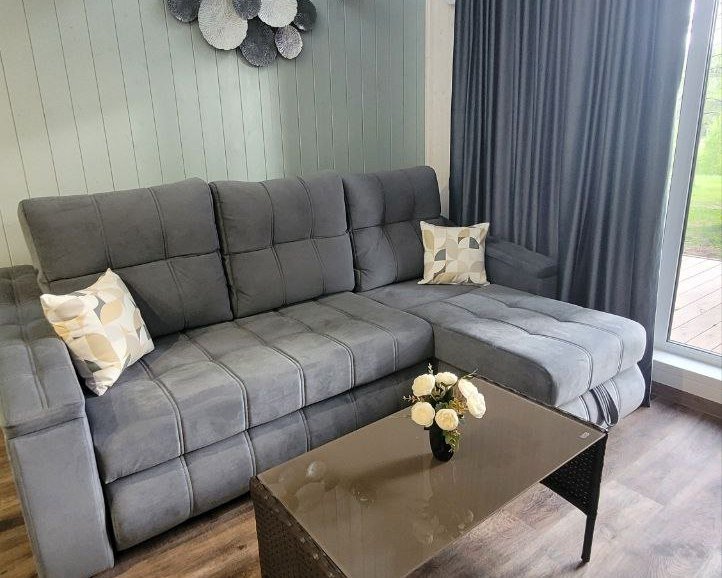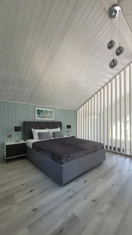 Имеет раскладной диван на первом этаже, а также на 2 уровне присутствует двуспальная кровать 160х200 и раскладной одноместный диван.