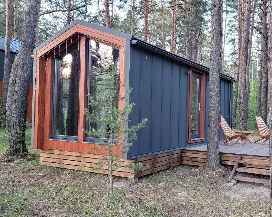 Дом общей площадью 21 м2 с изолированным сан. узлом и открытой пристроенной террасой 11 м2. Дом для комфортного проживания 1-2 человек.