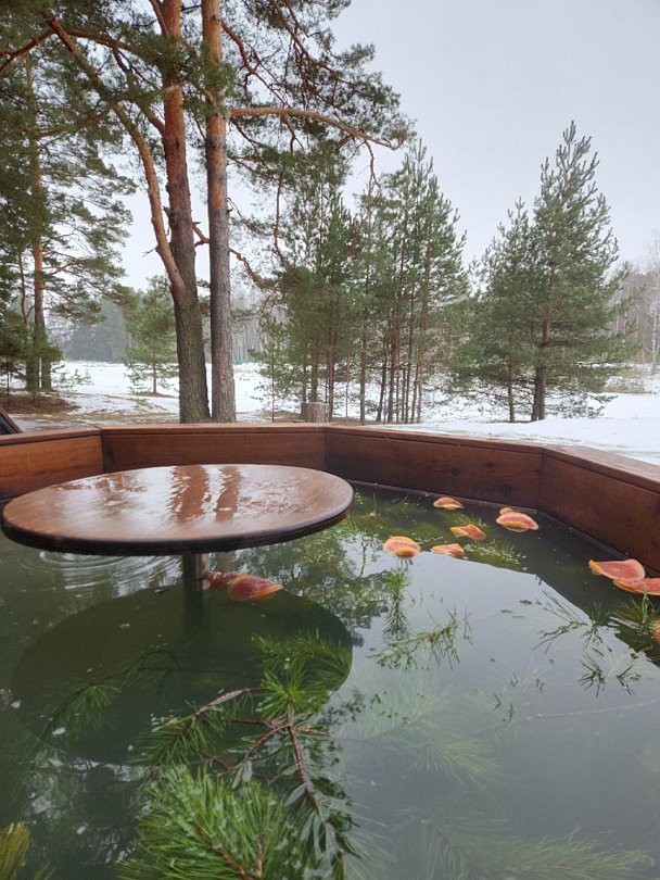 Среди развлечений: банный чан, беседка с мангальной зоной, а также прокат лодок, сап-бордов и велосипедов.