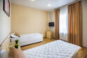 Две раздельные кровати, диван-кровать, зеркало, прикроватные тумбы, телевизор, санузел (душ+туалет), КУХНЯ, чайник, микроволновая печь, обеденный стол, стулья, балкон