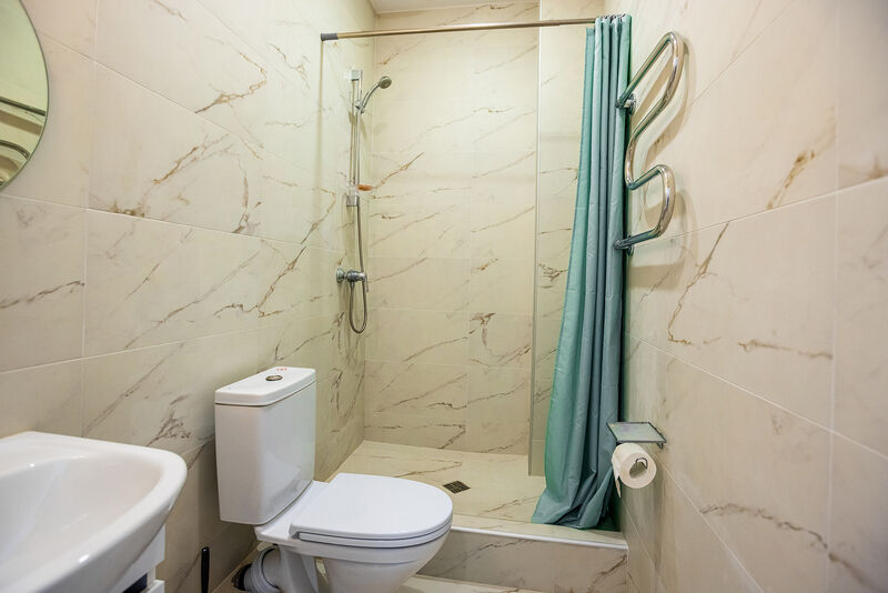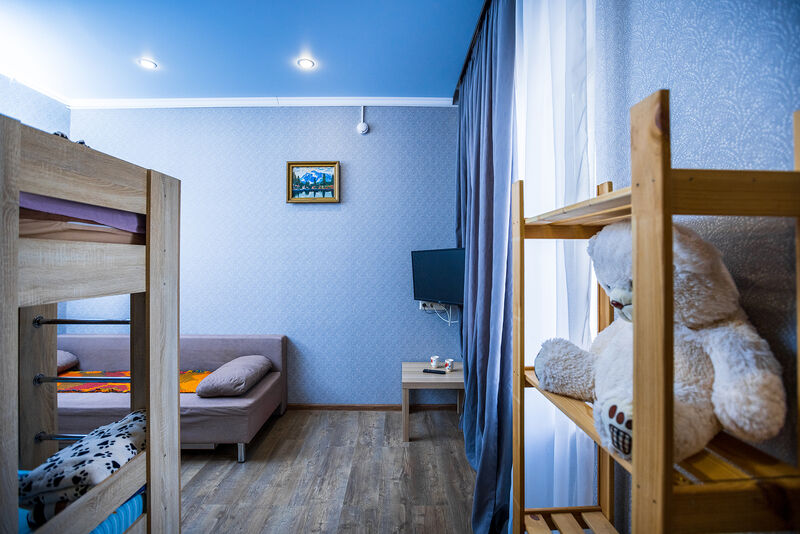 Двухъярусная кровать+диван или диван+раскладушка, холодильник, кондиционер, телевизор, санузел(душ+туалет)