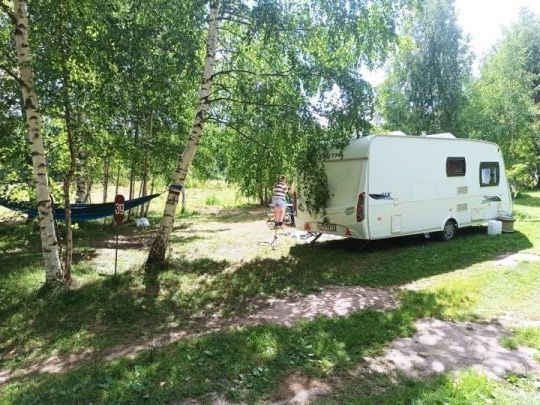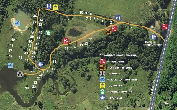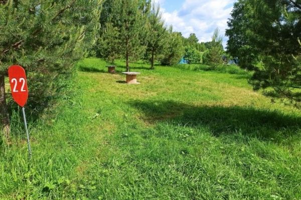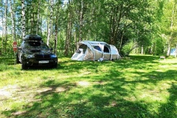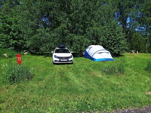 Чистое, выкошенное, обработанное от клещей место для для размещения палатки или каравана. Транспортные средства размещаются на парковках.