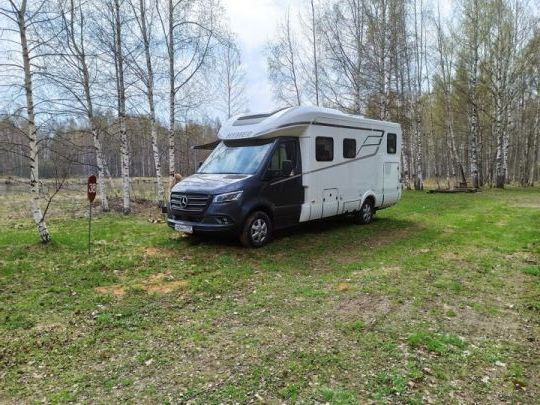 Чистое, выкошенное, обработанное от клещей место для для размещения, автодома или каравана.