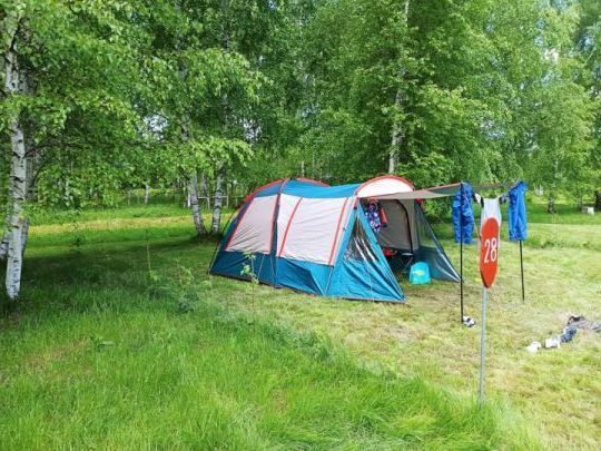Чистое, выкошенное, обработанное от клещей место для для размещения палатки.