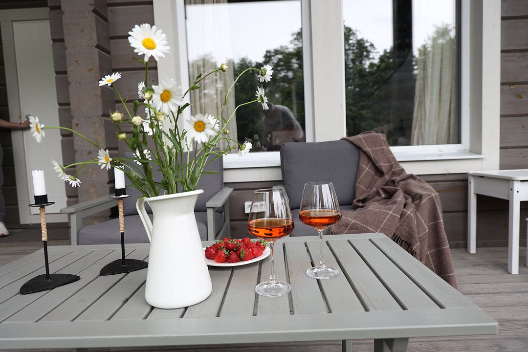- просторная гостиная для комфортного отдыха с выходом на террасу с уличной мебелью;