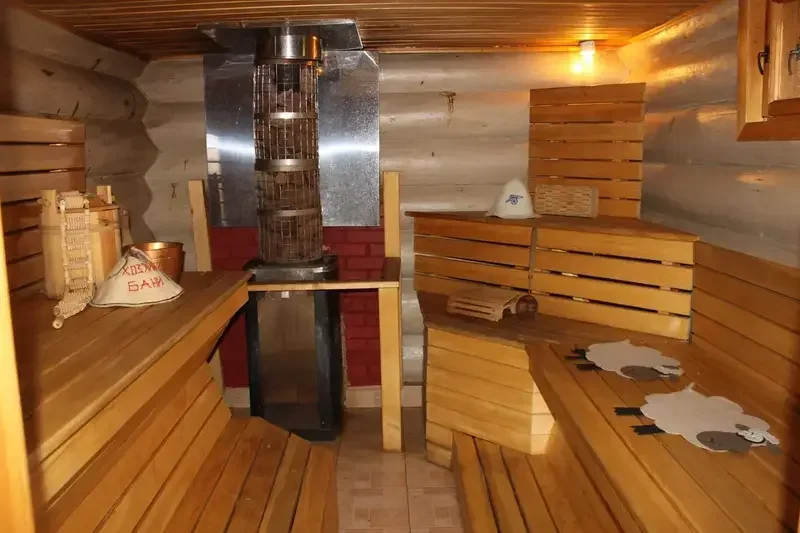 Русская парная с вениками и банными полотенцами; финская сауна на дровах, парная. Банный комплекс оборудован помещением для отдыха, душем, бассейном с родниковой водой, теплым полом.