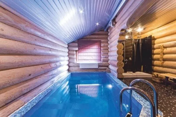 Бассейн с родниковой водой, расположенный в банном комплексе.