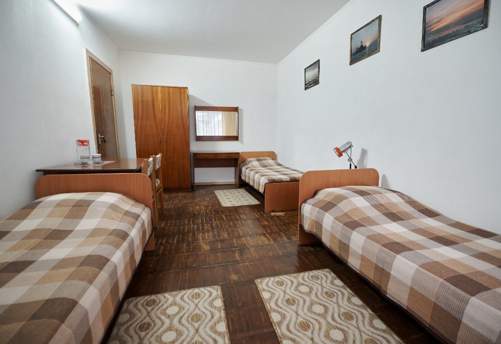 Один из двух номеров в блоке с общим сан. узлом и летним душем. В цену включено трехразовое питание на человека! Однокомнатный номер на 2 или 3 основных места. Площадь номера - от 12 до 18 кв.м. Основные места - две или три односпальные кровати. Номера данной категории располагаются на 1 и 4 этажах. Вид из номеров на прилегающую парковую территорию. Дополнительное место-раскладушка возможно установить только в номере с тремя кроватями.Услуги и удобства