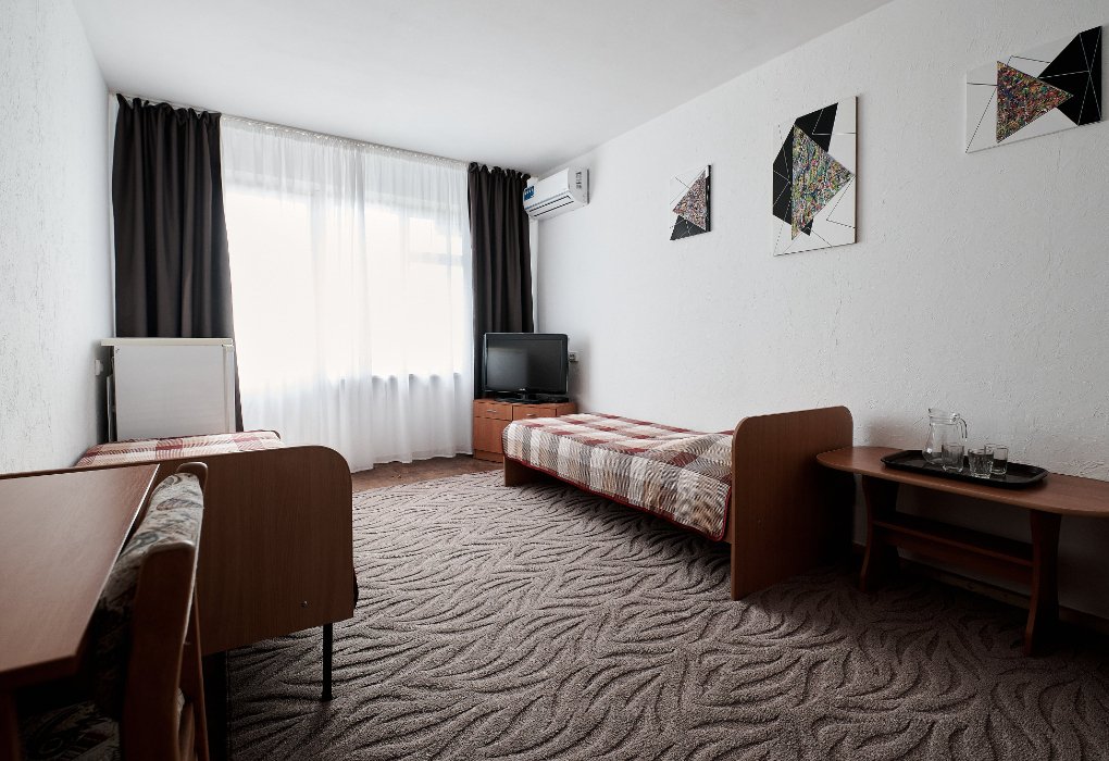 Уютный однокомнатный номер. В цену включено трехразовое питание! Номер на 1 основное место. Площадь номера - 9 кв.м. Основное место - односпальная кровать или диван. Номера данной категории располагаются на 1-4 этажах. Вид с верхних этажей на море. Вид с первых этажей на сад. В некоторых номерах возможна установка детской кроватки.Услуги и удобства