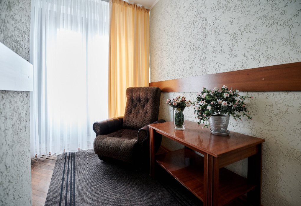Для гостей пансионата предлагаются номера различной категории — от стандарта с общим на два номера санузлом, до двухкомнатных люксов.