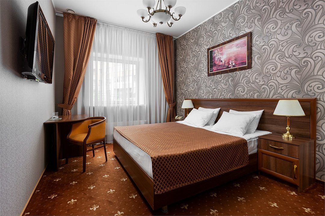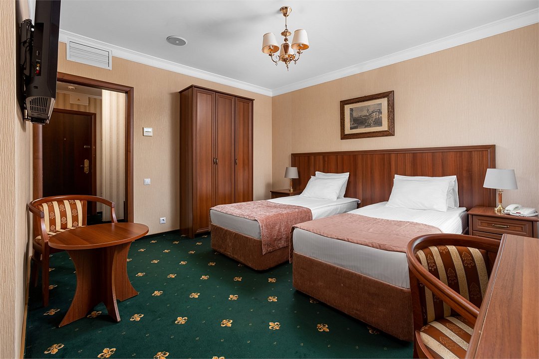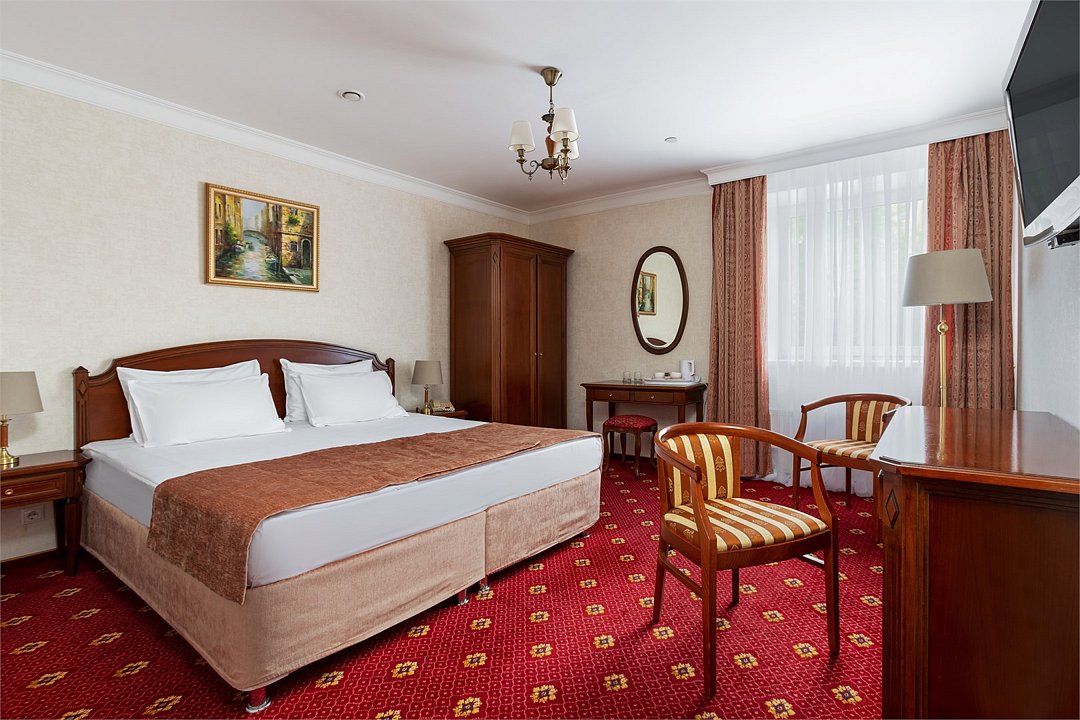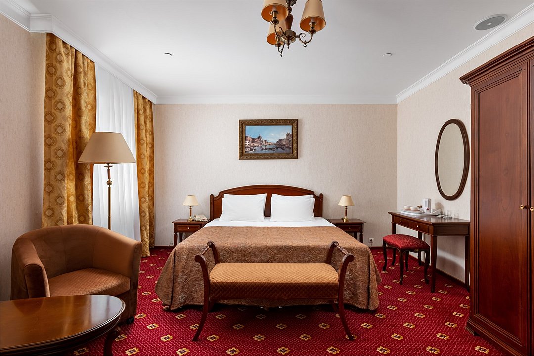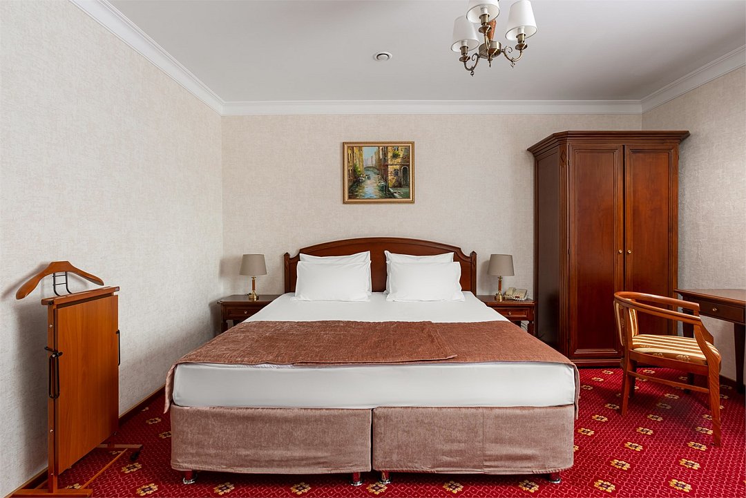 Интерьеры в классическом стиле, с одной кроватью King Size или с двумя раздельными кроватями для комфортного сна. В рабочей зоне установлен письменный стол и удобное кресло для продуктивной работы. Завтрак,тапочки и зубной набор оплачивается дополнительно.Услуги и удобства
