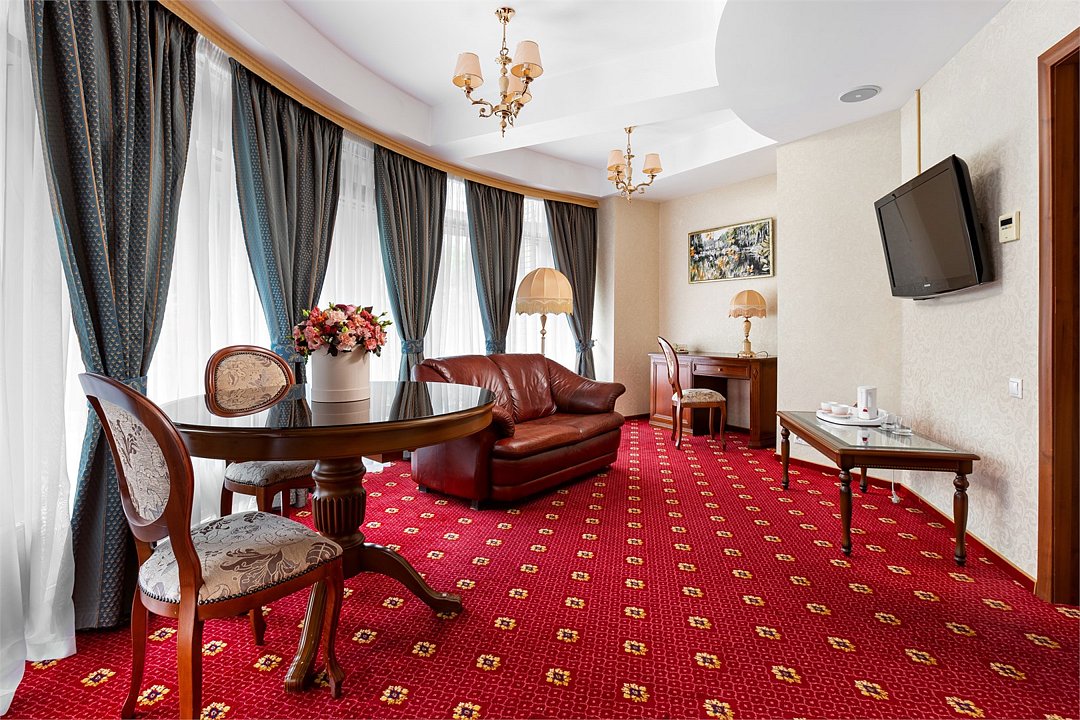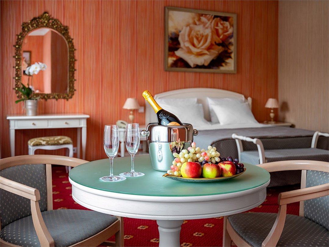 В каждом номере индивидуальный интерьер в классическом стиле. Номер состоит из отдельной гостиной с дверью и спальни с большой двухспальной кроватью и панорамными окнами с видом на город. Завтрак оплачивается дополнительно.Услуги и удобства