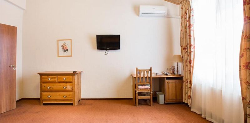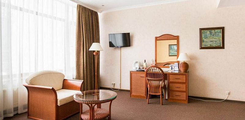 Номерной фонд рассчитан на 232 места, номера 2-х или 4-х местные отличаются по площади и дизайну помещения. Однако все они равноценно обставлены современной бытовой техникой, деревянной мебелью, мини-баром, сейфом, имеют выделенный санузел с ванной или душем. Для деловых мероприятий можно арендовать комнату для переговоров и конференц-зал.