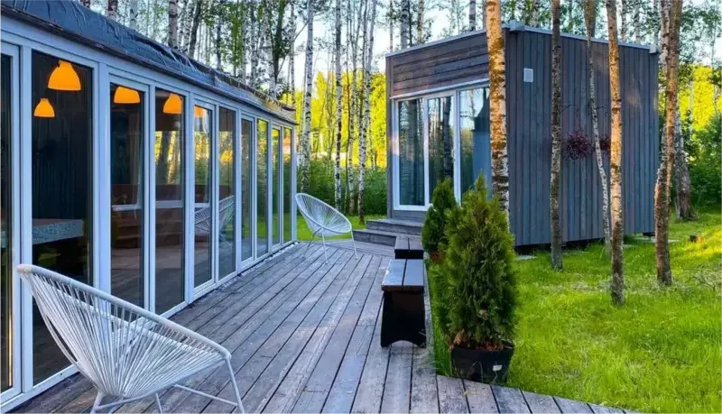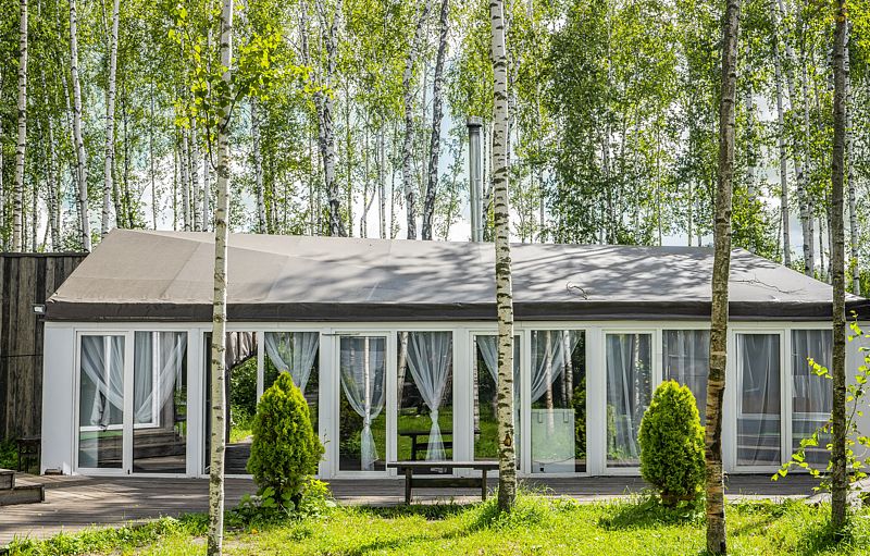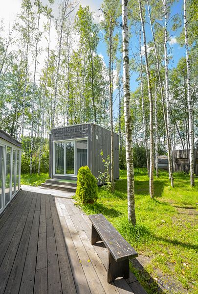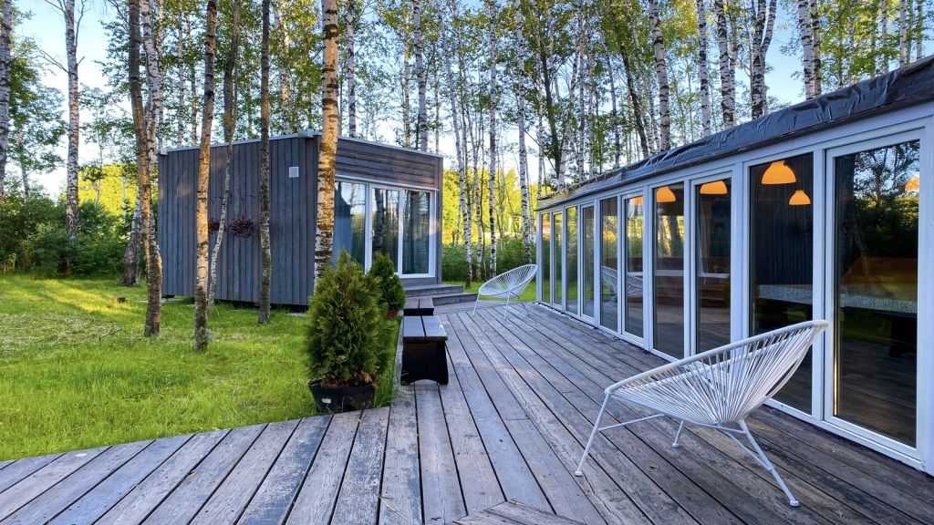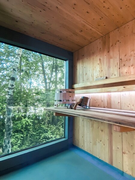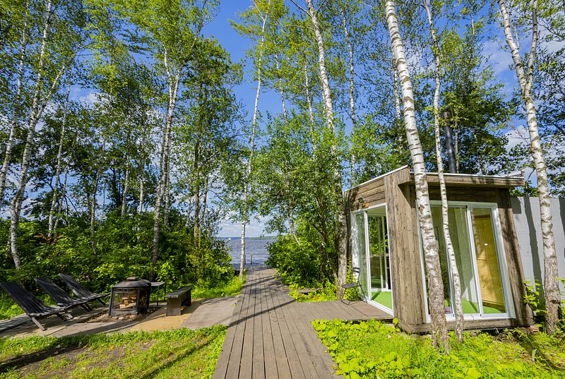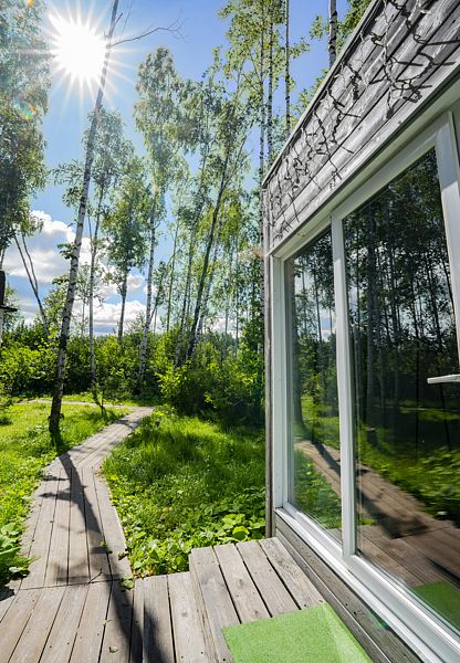 Баня с панорамным стеклом на берегу Икшинского водохранилища. Уединенное лесное место для спокойного отдыха с семьей или друзьями. Дровяная печь — закрытая каменка с пароиспарителем. Любой режим — русская баня, финская сауна, хаммам.