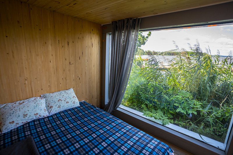 - одном из домиков прозрачная стена с видом на воду;
