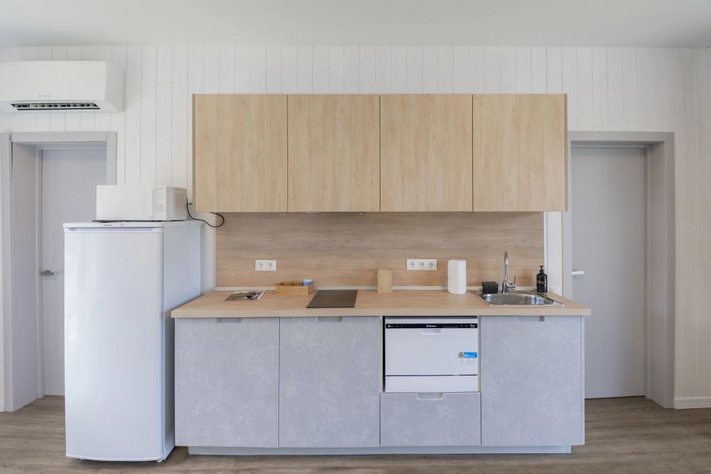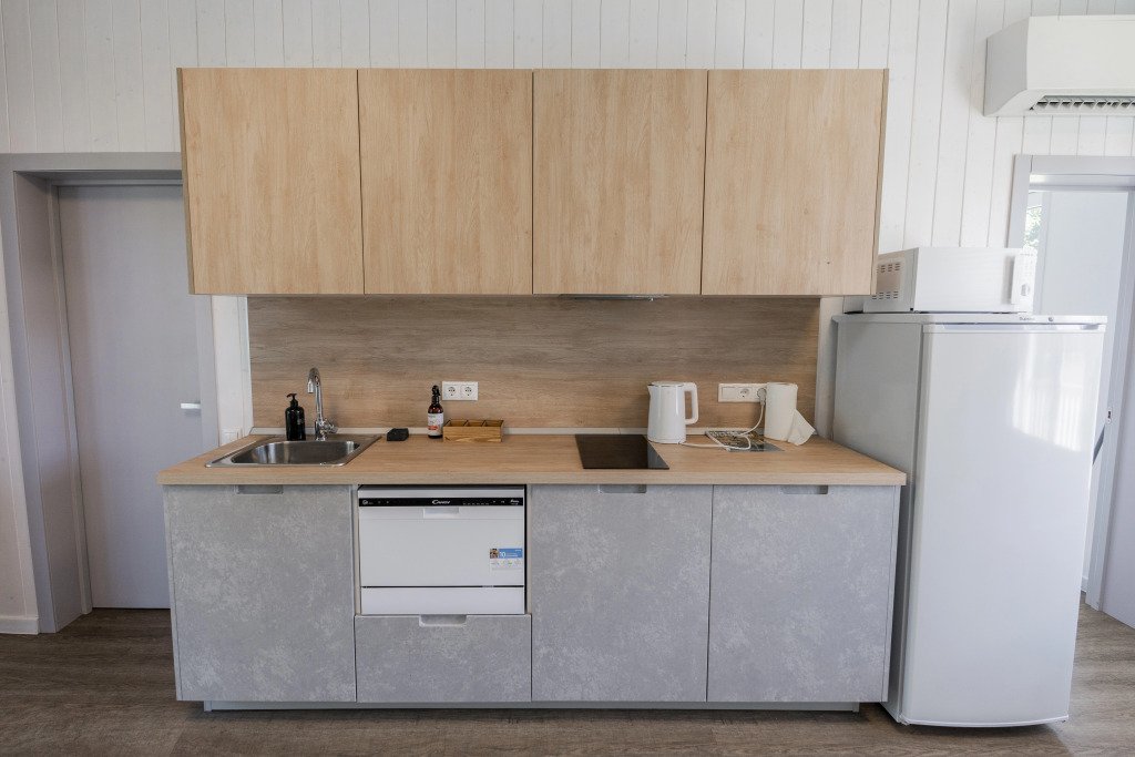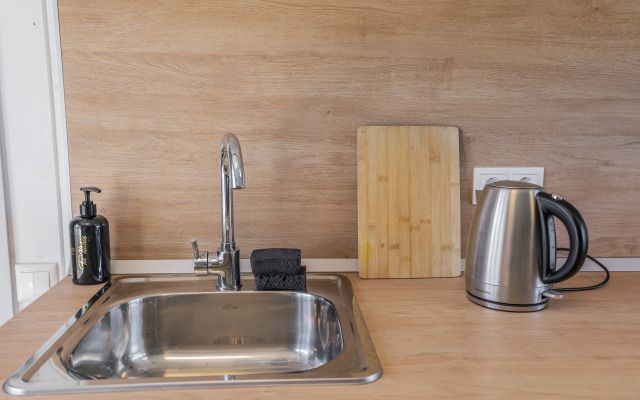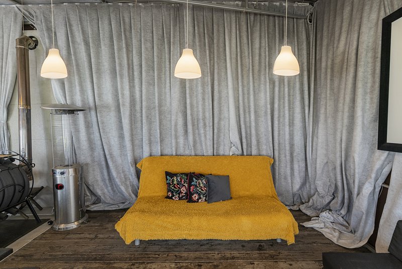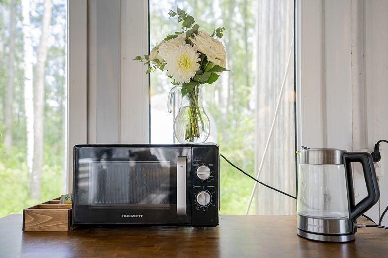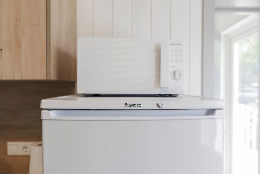 На веранде холодильник, чайник, микроволновка, вентилятор и печь, можно поставить