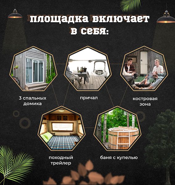 Здесь вы сможете отдохнуть на природе и провести незабываемое мероприятие с массой развлечений и оригинальных решений. Это может быть свадьба, корпоратив, день рождения, детский праздник или даже караоке-вечеринка! Доступны как готовые программы, так и возможность индивидуального заказа.