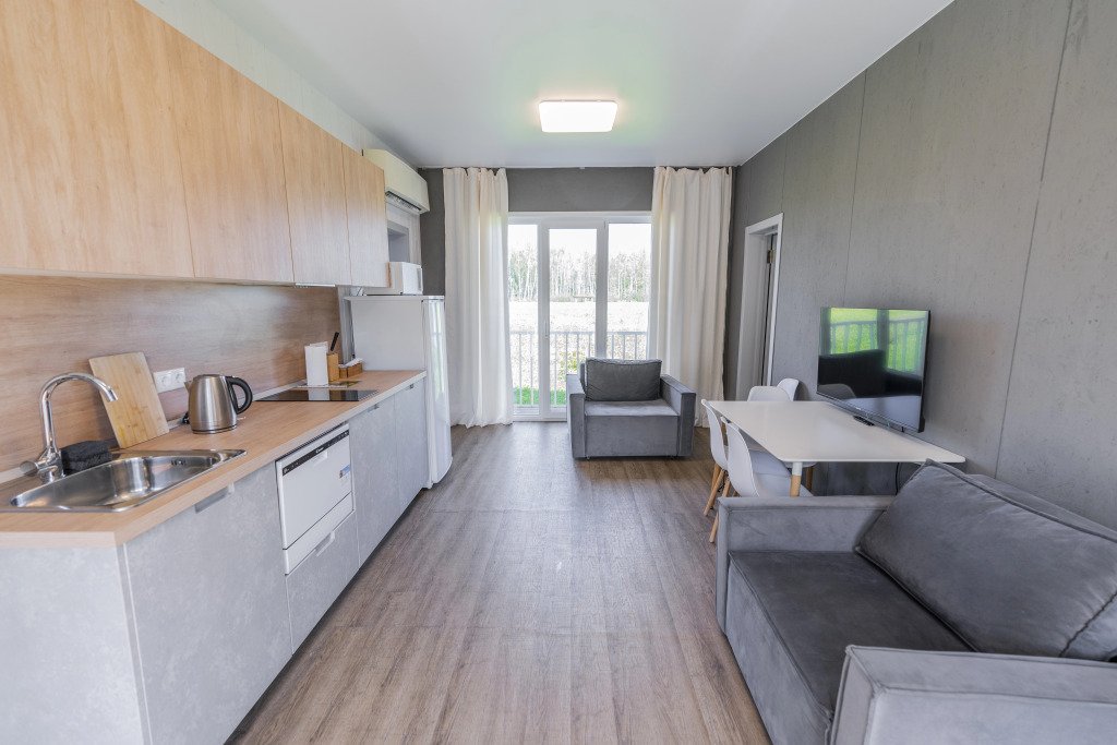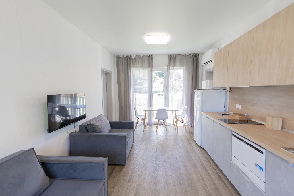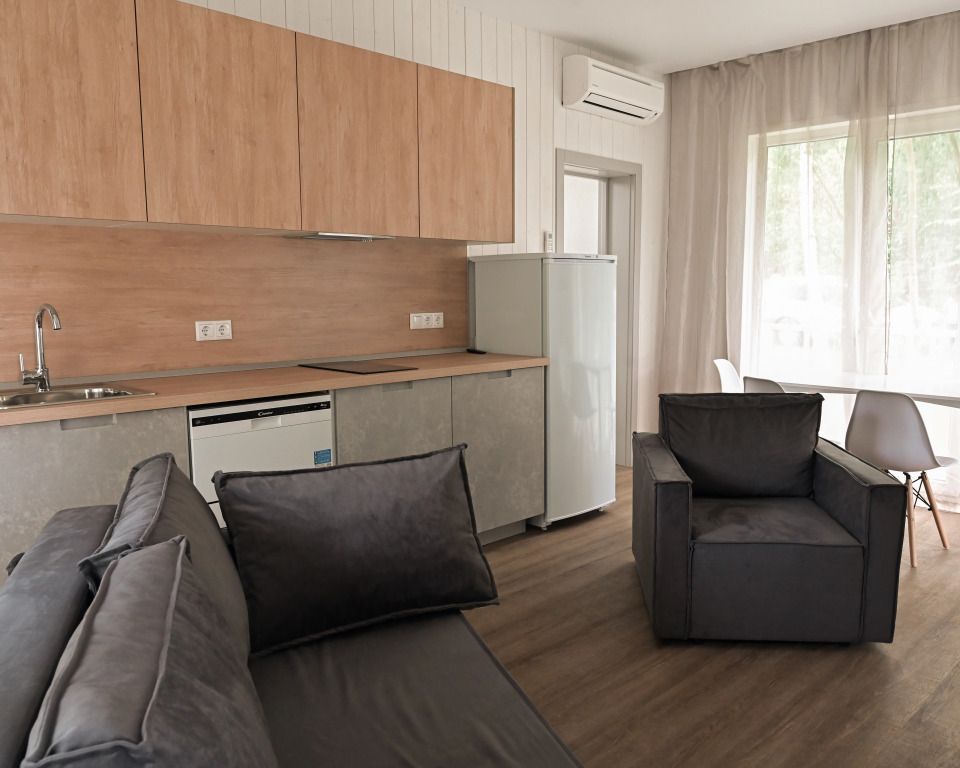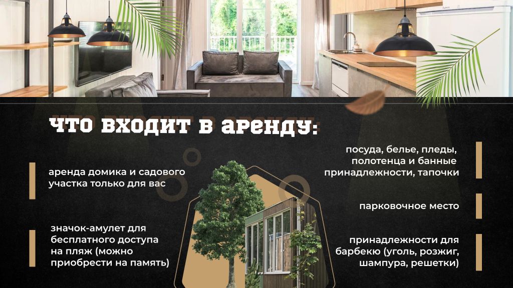 - спальня с двуспальным диваном-кроватью; полотенца, ванные принадлежности, постельное белье, пледы;