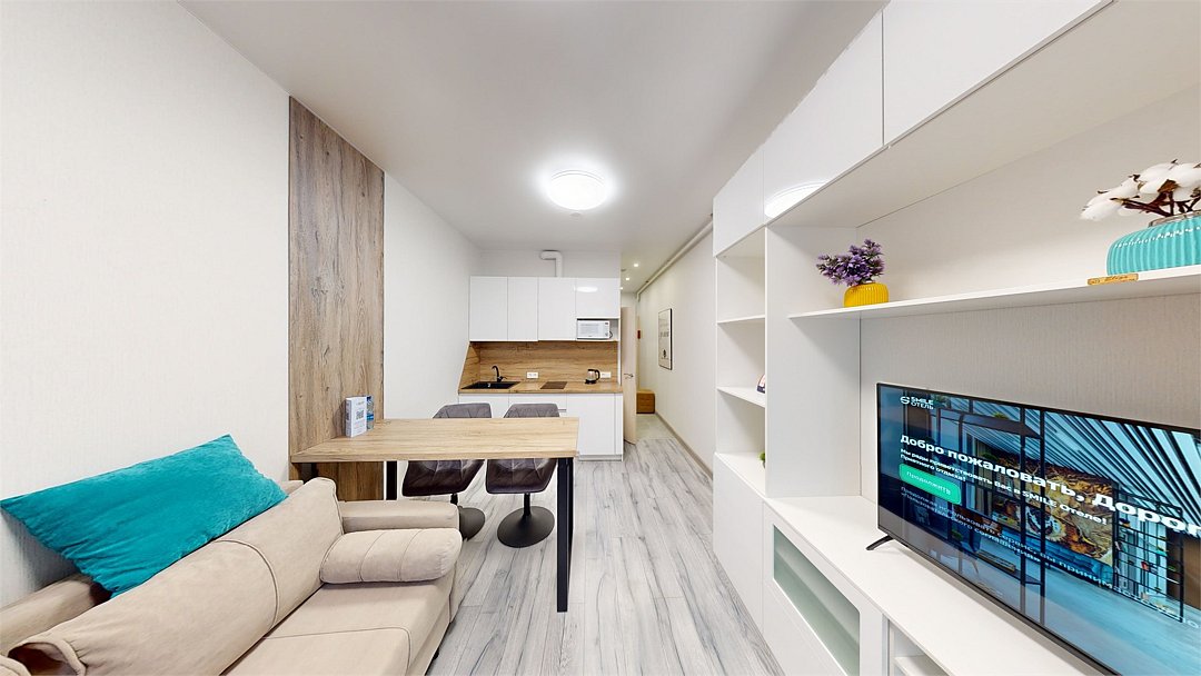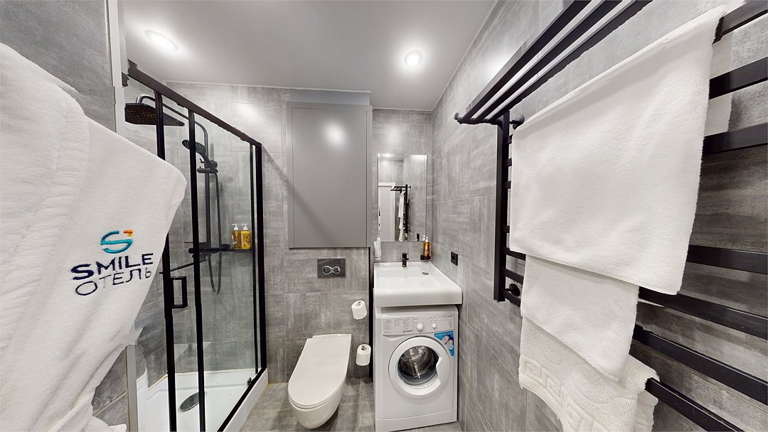 Благодаря грамотному зонированию в номере предусмотрено полноценное спальное место, рабочая зона и кухня с обеденной зоной, где гости могут приготовить свои любимые блюда и насладиться домашней обстановкой. Стильный интерьер и современная обстановка создают приятную атмосферу для отдыха и работы. Стандарт улучшенный идеально подходит для проживания 1-2 гостей, которые ценят независимость и комфорт. Ванная комната оснащена душевой кабиной, стиральной машиной и полноценным набором косметических средств с мягкими халатами и полотенцами. Предусмотрена ежедневная уборка номеров, смена постельного белья 1 раз в 3 дня.Услуги и удобства