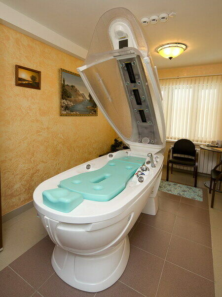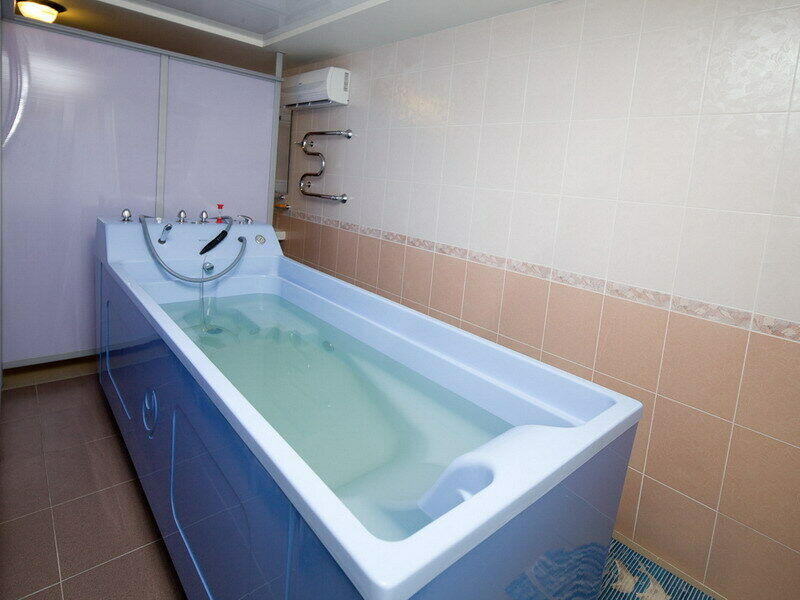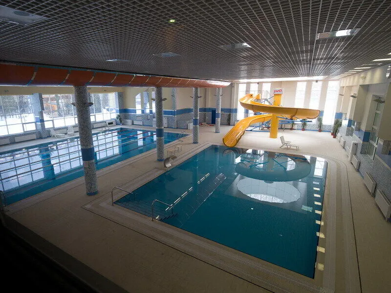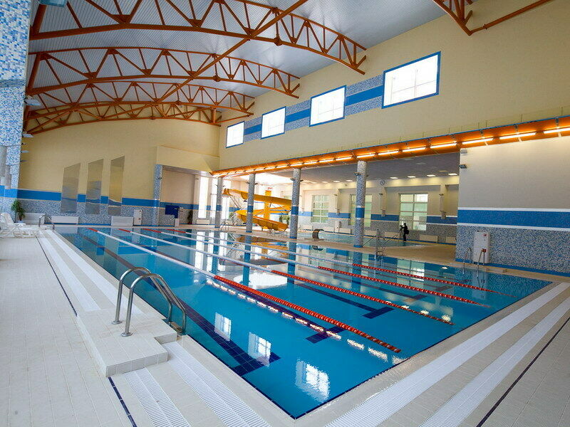 Тип бассейна: крытый бассейнРядом с бассейном: шезлонгиДля людей с ограниченными возможностями спуск в бассейн оборудован специальным подъемным устройством. Архитекторы и строители сделали все возможное, чтобы посетителям было комфортно в любую погоду: комплекс сооружен в непосредственной близости со спальным корпусом и соединен с ним арочным стеклянным переходом на уровне 2 этажа.