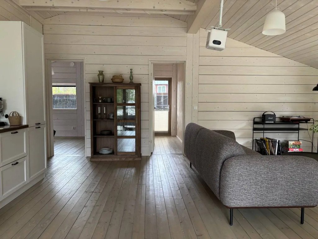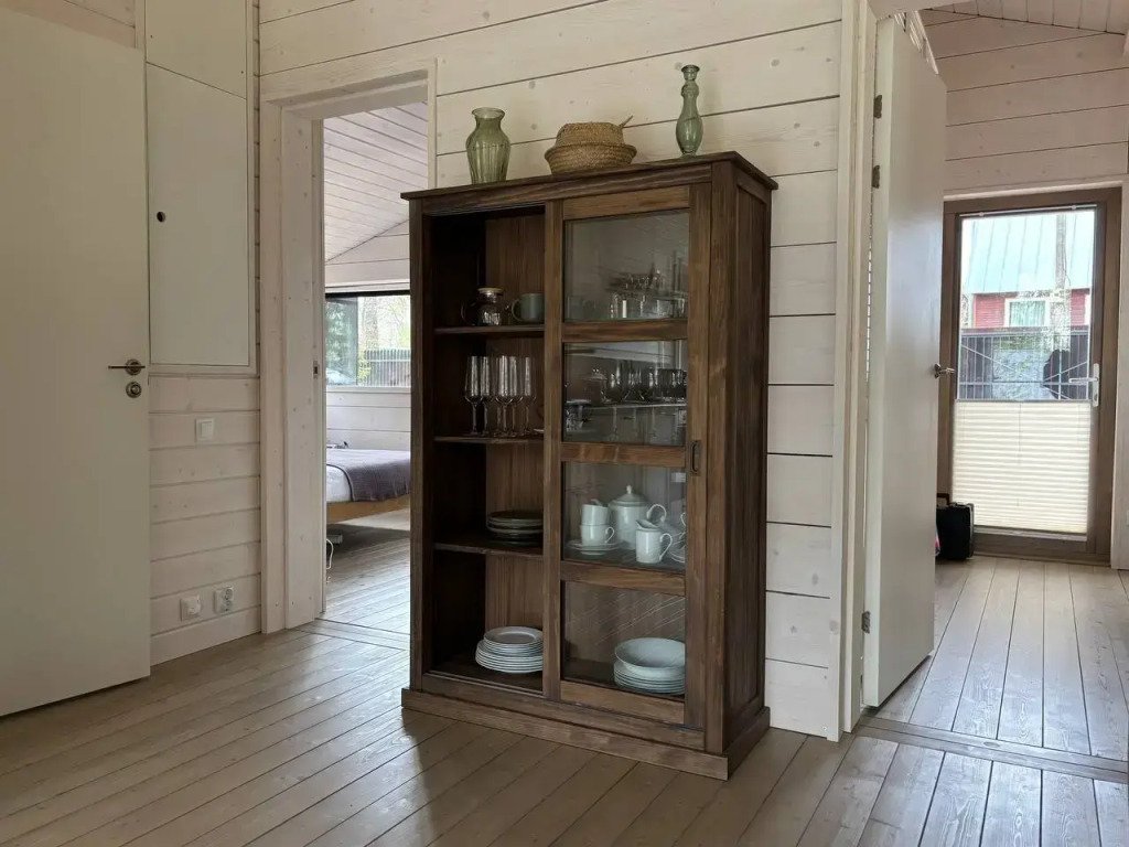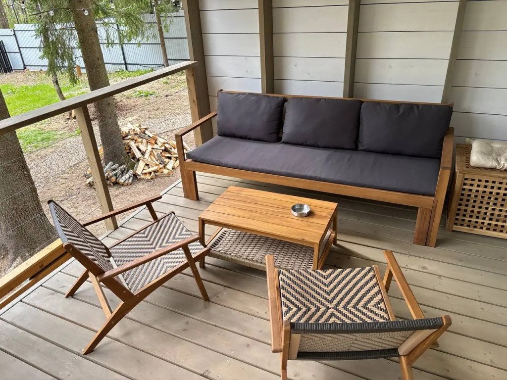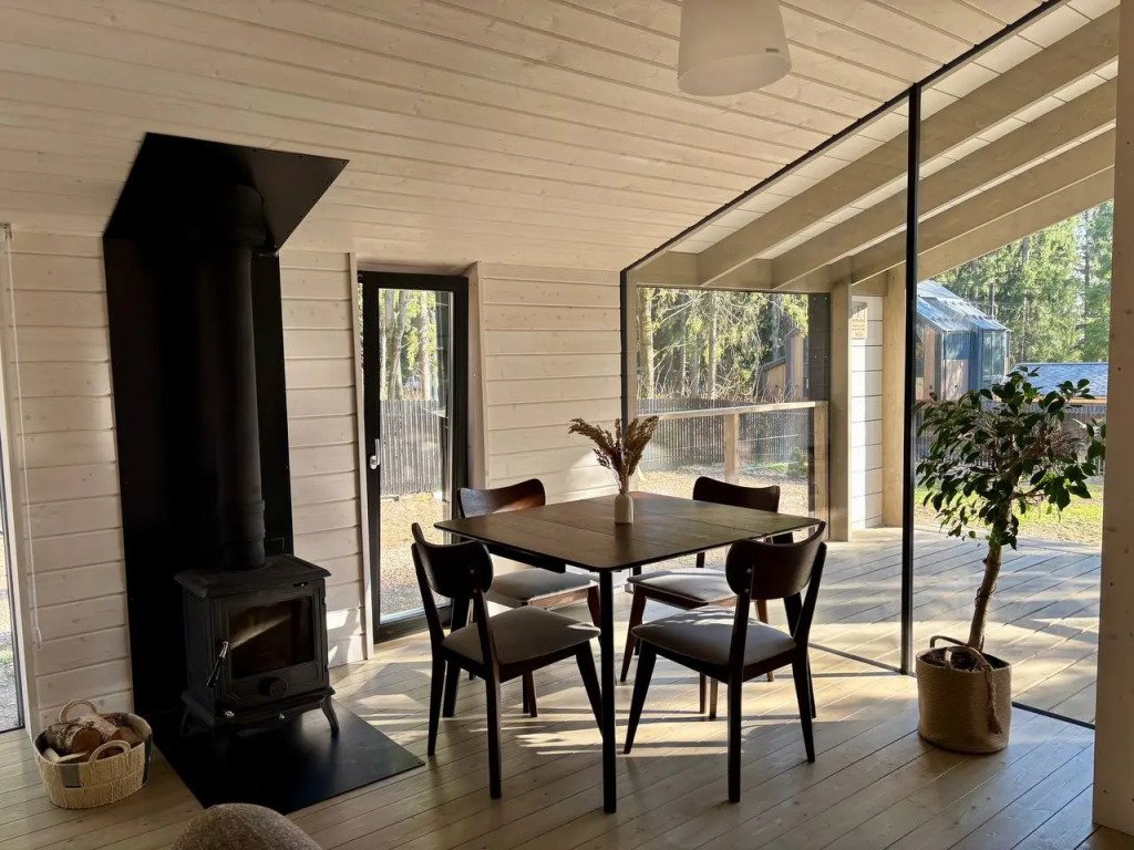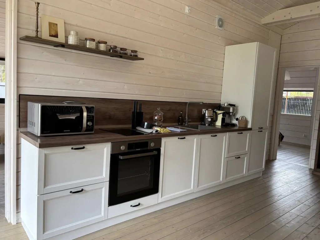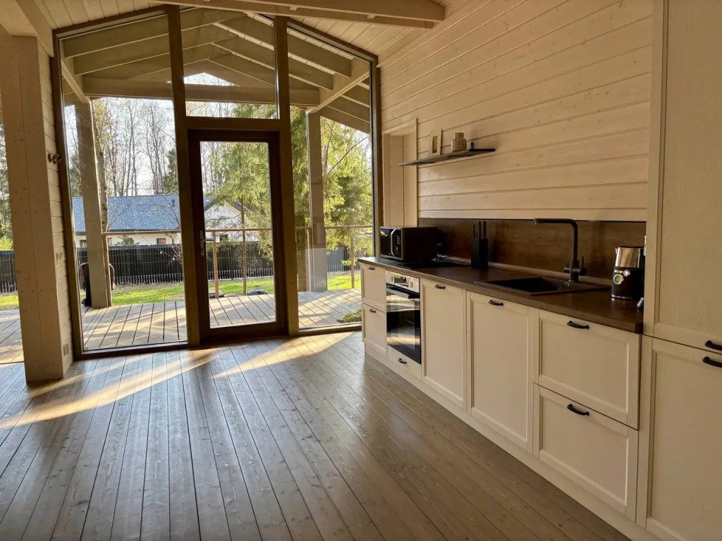 Дом рассчитан на 6 человек. Внутри: три спальные комнаты, две двуспальные кровати, один раскладной диван, кухня-гостиная с камином, санузел с ванной и тёплым полом, терраса с мебелью, мангальная зона и костровая чаша. Из техники: микроволновка, холодильник, духовой шкаф, посудомоечная машина, стиральная машина, кофемашины Nespresso и Delonghi, фильтр для воды, проектор, Wi-Fi, проигрыватель винила, колонка Marshall. Предоставляется комплект посуды, постельное бельё, полотенца, гигиенические принадлежности. На участке: гамак, уличная детская кухня, парковка на 2 автомобиля.