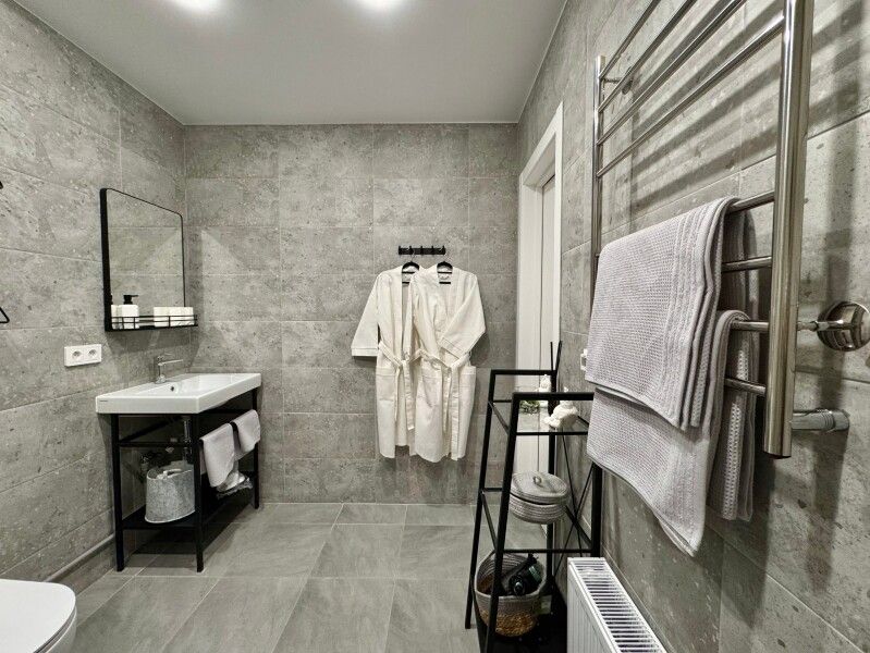 Просторный интерьер наполнен светом, а элегантный дизайн делает пребывание здесь уникальным. Гостям предоставляются удобные тапочки, халаты и необходимые предметы личной гигиены, что позволяет наслаждаться беззаботным отдыхом.