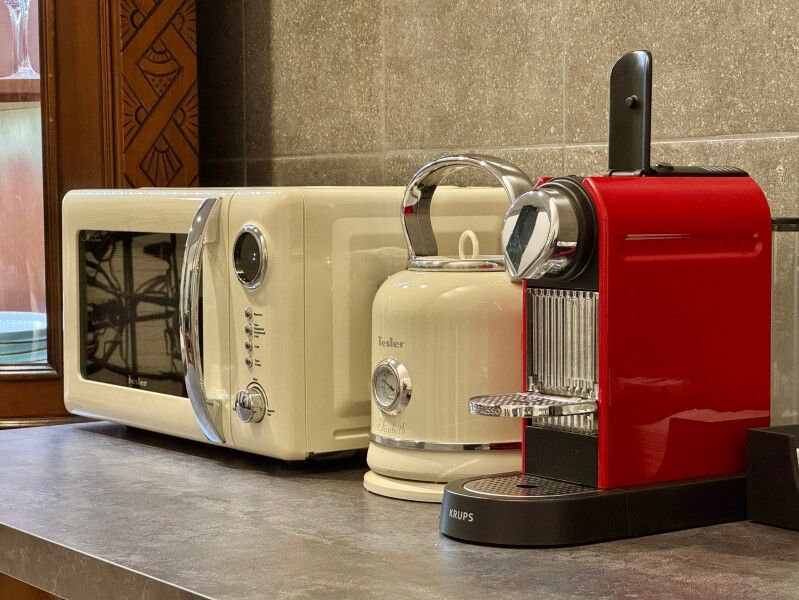 В оборудованной кухне найдётся всё необходимое для приготовления легких закусок и романтических ужинов, а капсульная кофемашина станет настоящим удовольствием для ценителей кофе.