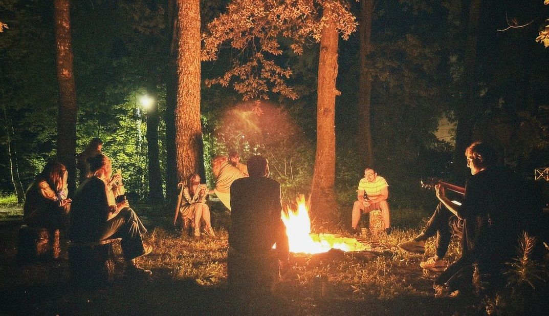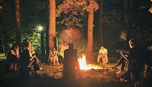Организуется большой костер вечером в выходные дни при хорошей погоде.