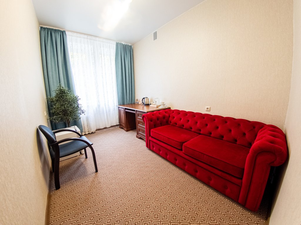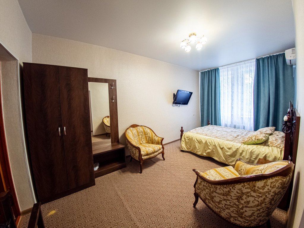 В отеле 35 номеров с кроватями трансформерами и ортопедическими матрасами. Номера оснащены кондиционером, холодильником, Smart-телевизором, чайником, феном и туалетными принадлежностями.