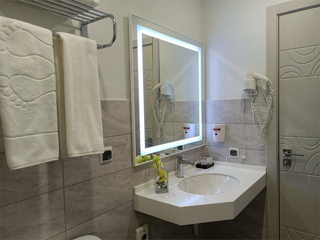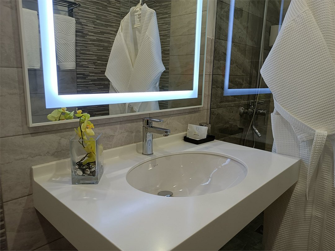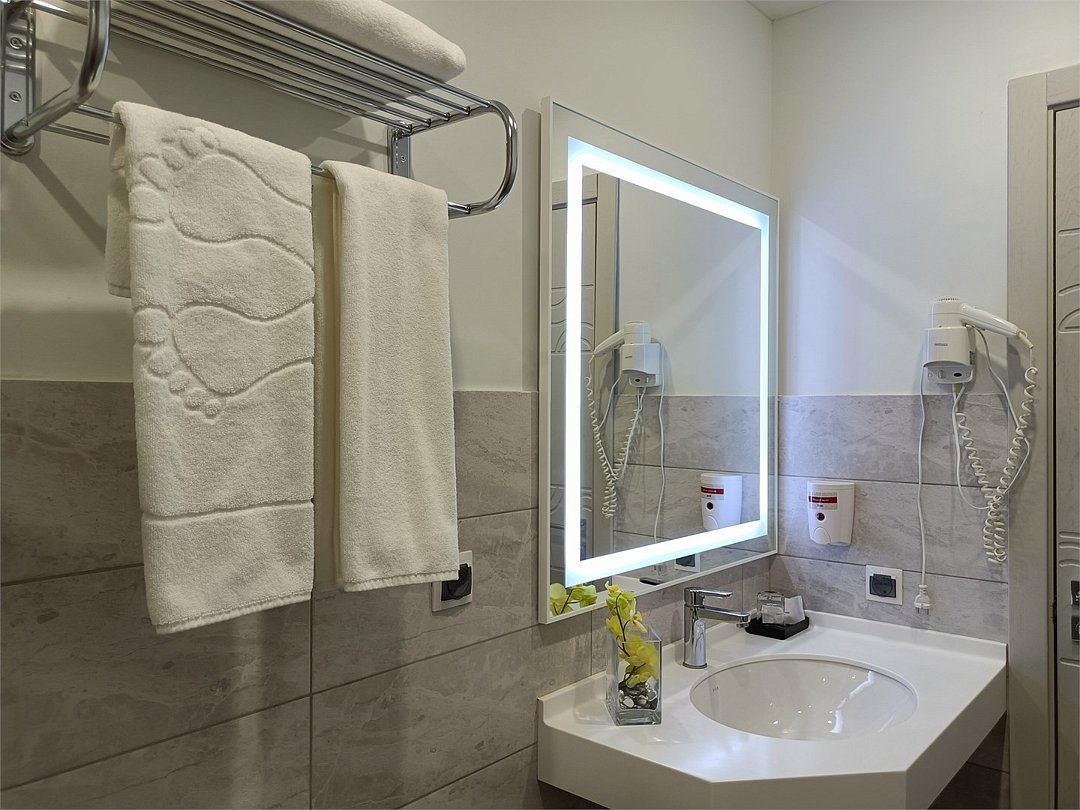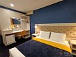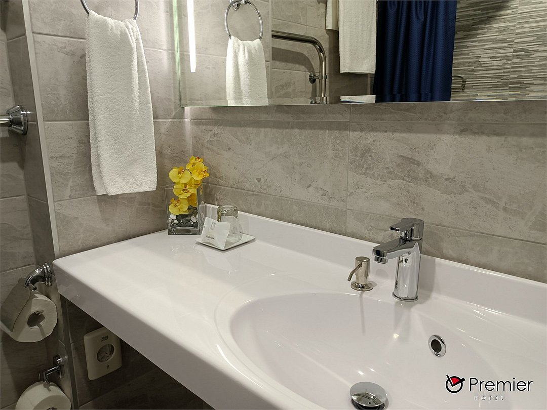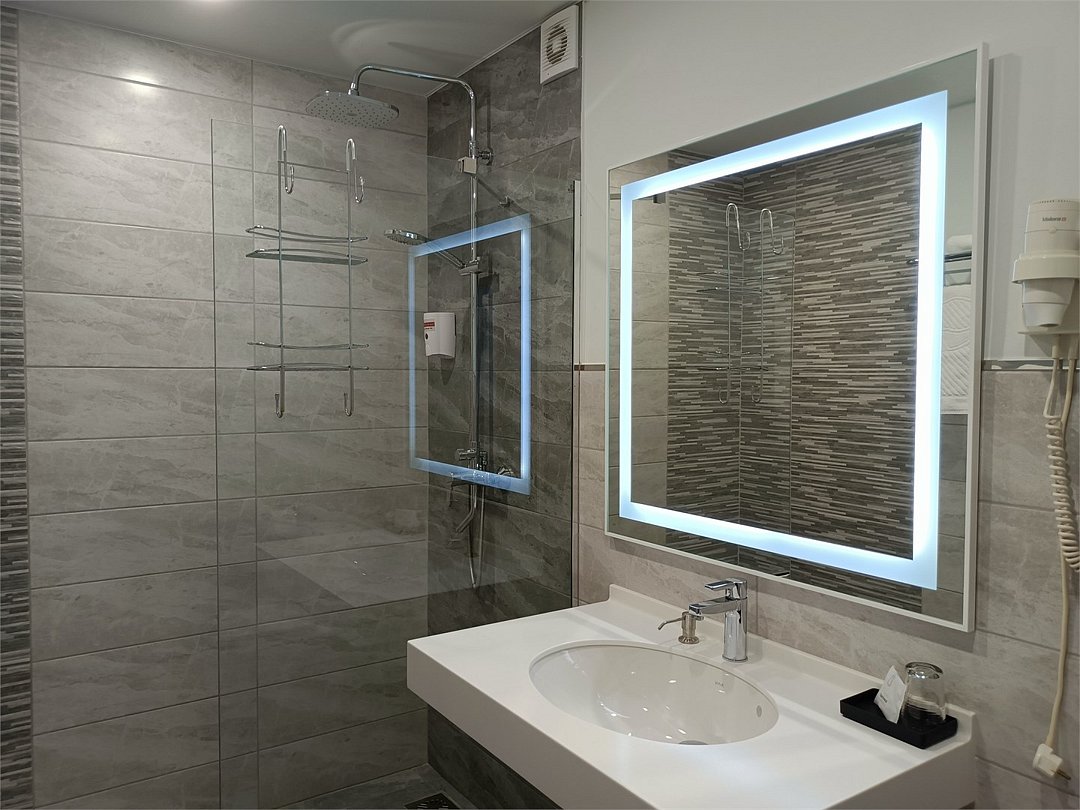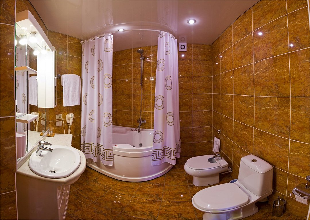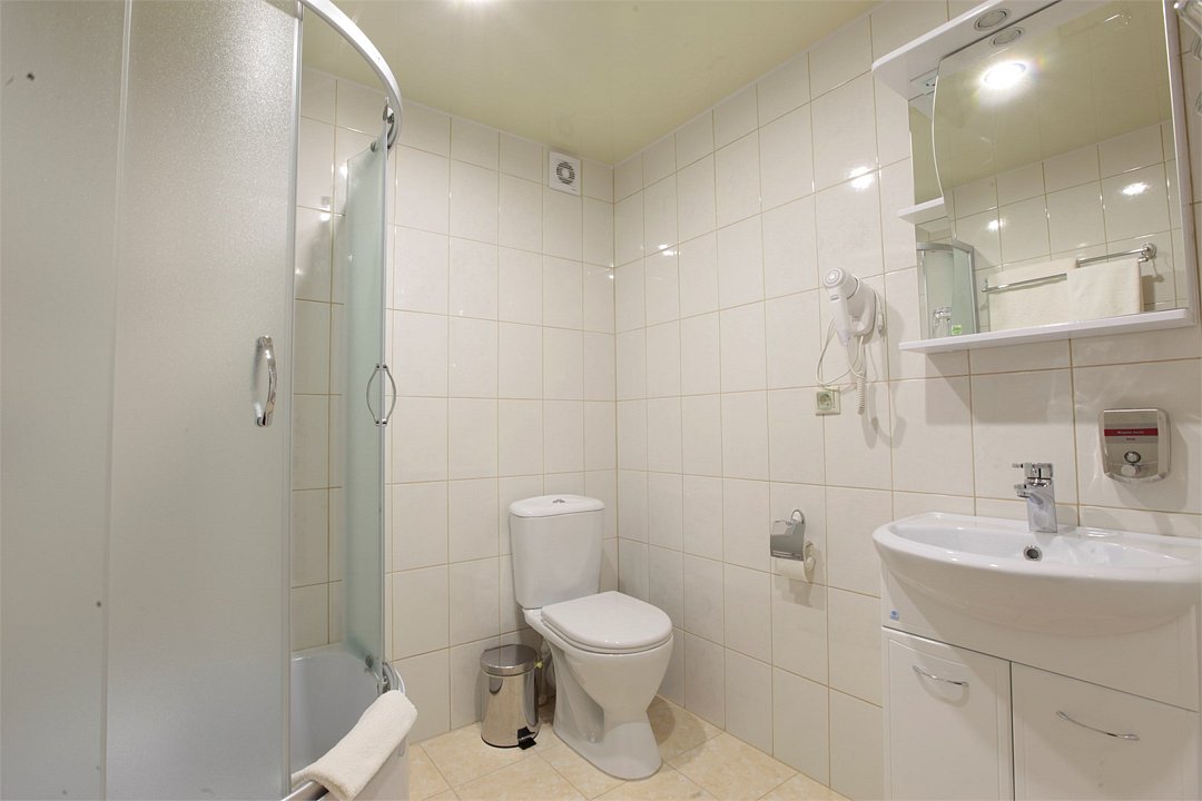 Просторный однокомнатный номер (30 кв.м.) с обновлённым дизайном. В номере есть всё необходимое для полноценной работы и отдыха: двуспальная кровать, телевизор, чайная станция, холодильник и кондиционер. В ванной комнате в наличии фен, шампунь, гель для душа, жидкое мыло, комплект полотенец, халат и тапочки. В стоимость проживания уже включен завтрак «шведский стол», беспроводной интернет и охраняемая парковка. Чай, сахар и бутилированная вода обновляются каждый день.Услуги и удобства