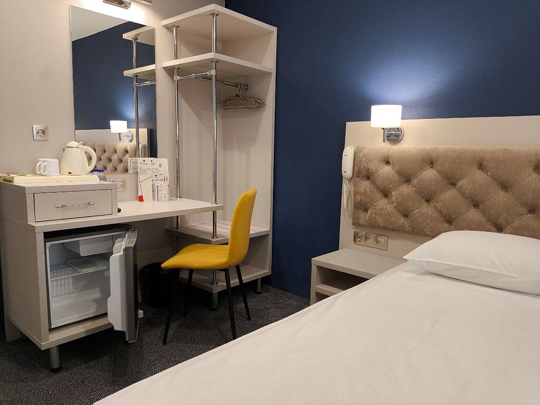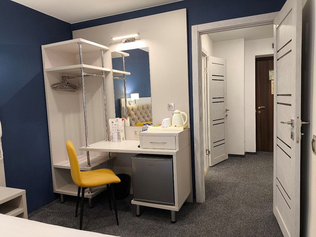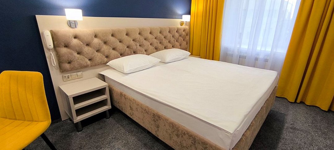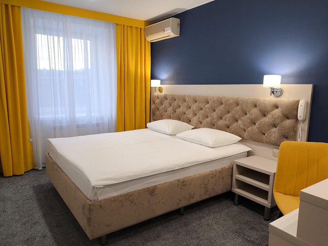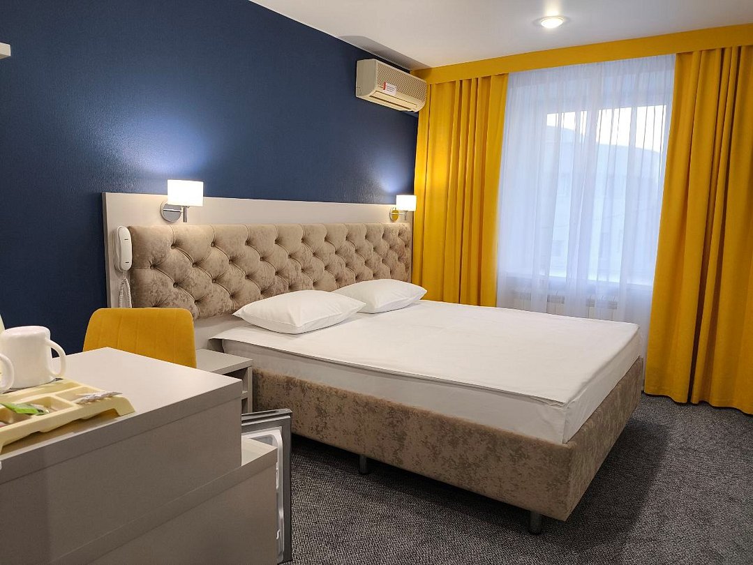 Уютный однокомнатный номер (17 кв.м.) с обновлённым дизайном интерьера. В номере есть всё для комфортного проживания и работы: двуспальная кровать, телевизор, чайная станция, холодильник и кондиционер. В ванной комнате в наличии фен, шампунь, гель для душа, жидкое мыло, комплект полотенец и тапочки. В стоимость проживания уже включен завтрак «шведский стол», беспроводной интернет и охраняемая парковка. Чай, сахар и бутилированная вода обновляются каждый день.Услуги и удобства