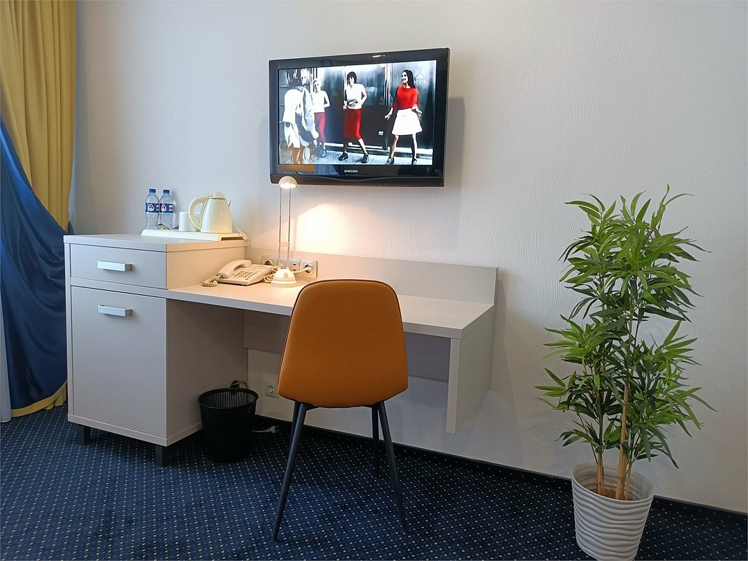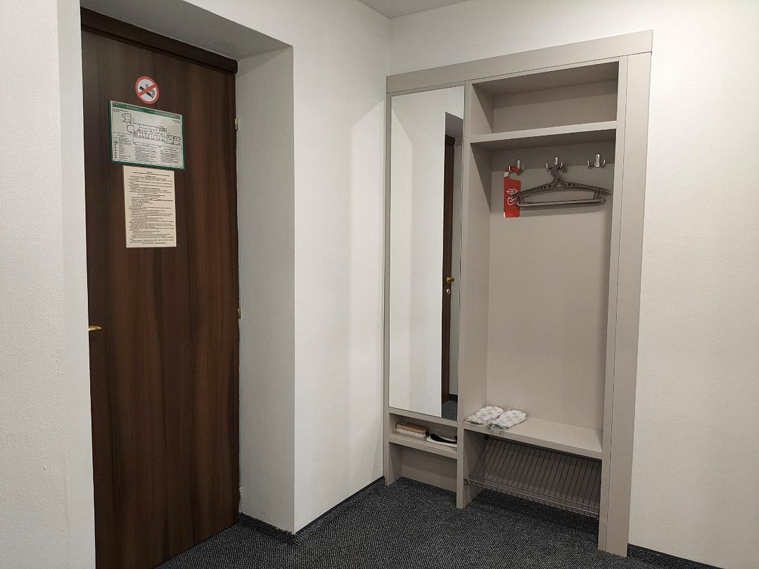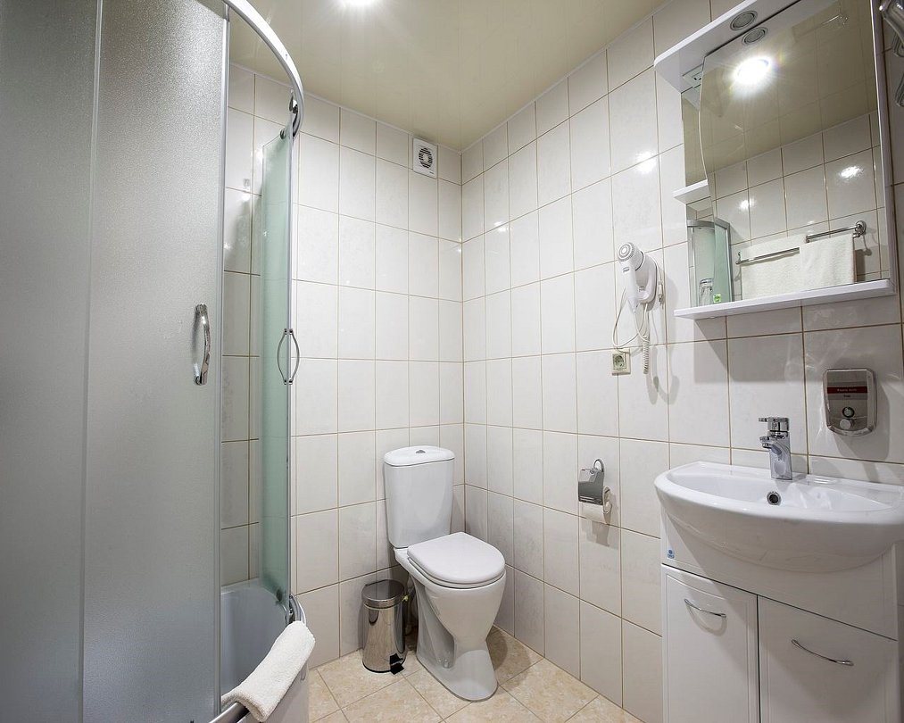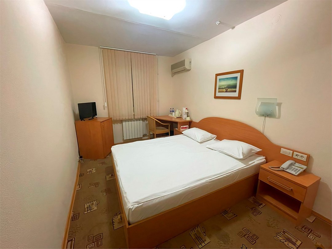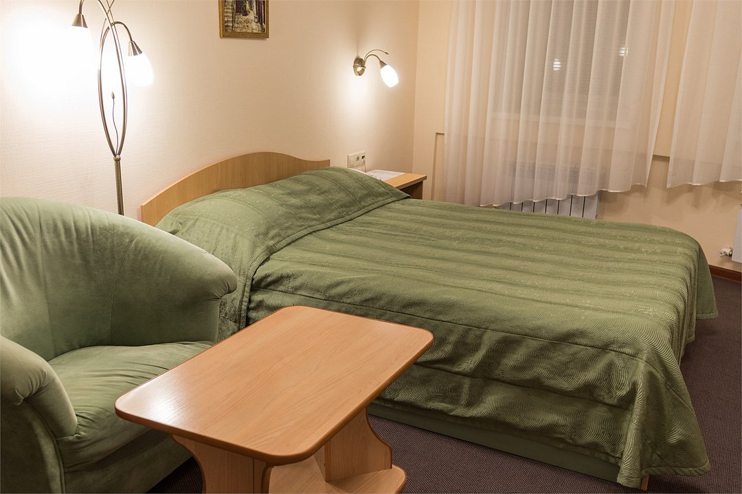Уютный однокомнатный номер (17 кв.м.) с обновлённым дизайном интерьера. В номере есть всё для комфортного проживания и работы: двуспальная кровать, телевизор, чайная станция, холодильник и кондиционер. В ванной комнате в наличии фен, шампунь, гель для душа, жидкое мыло, комплект полотенец и тапочки. В стоимость проживания уже включен завтрак «шведский стол», беспроводной интернет и охраняемая парковка. Чай, сахар и бутилированная вода обновляются каждый день.Услуги и удобства