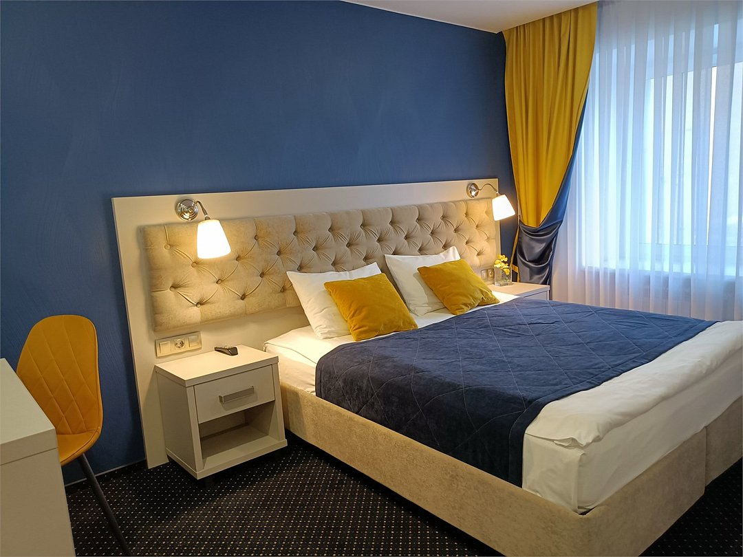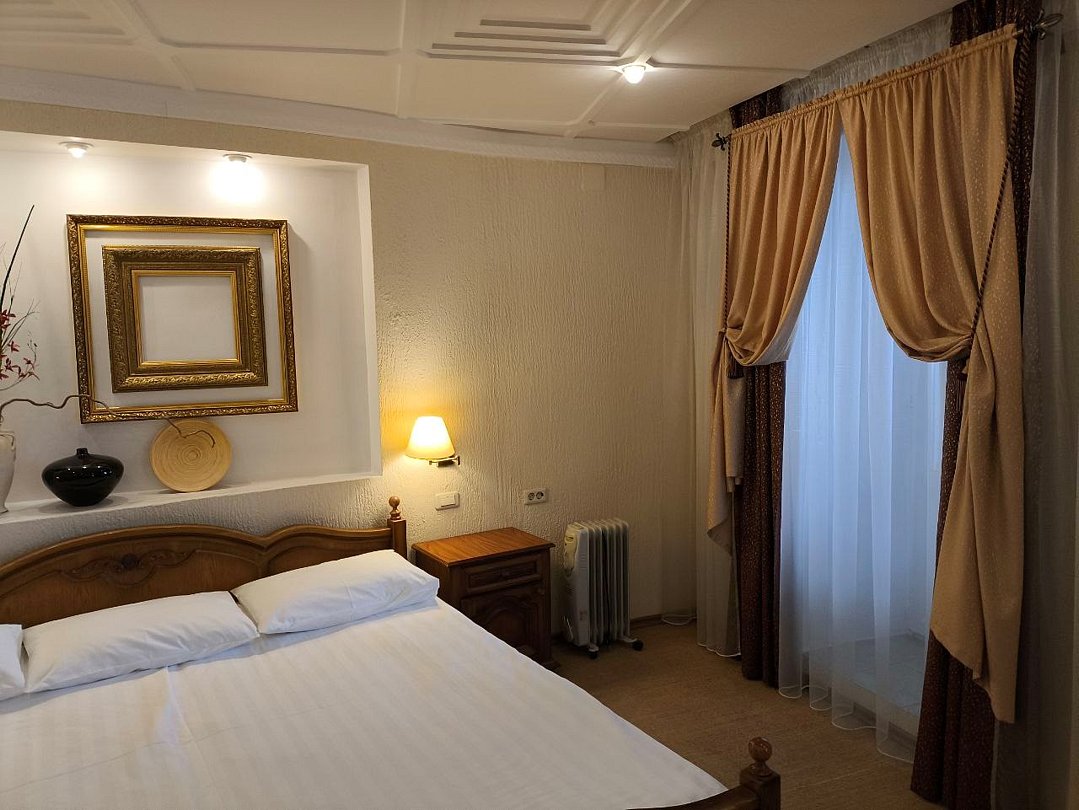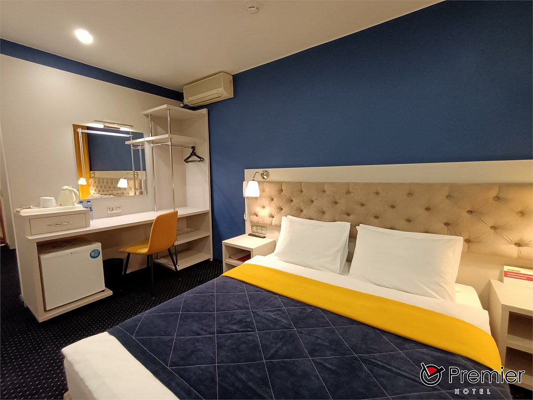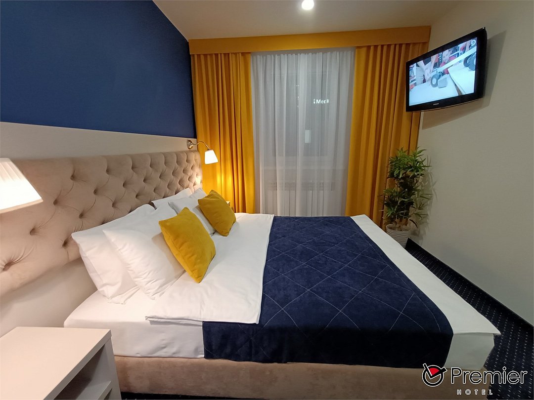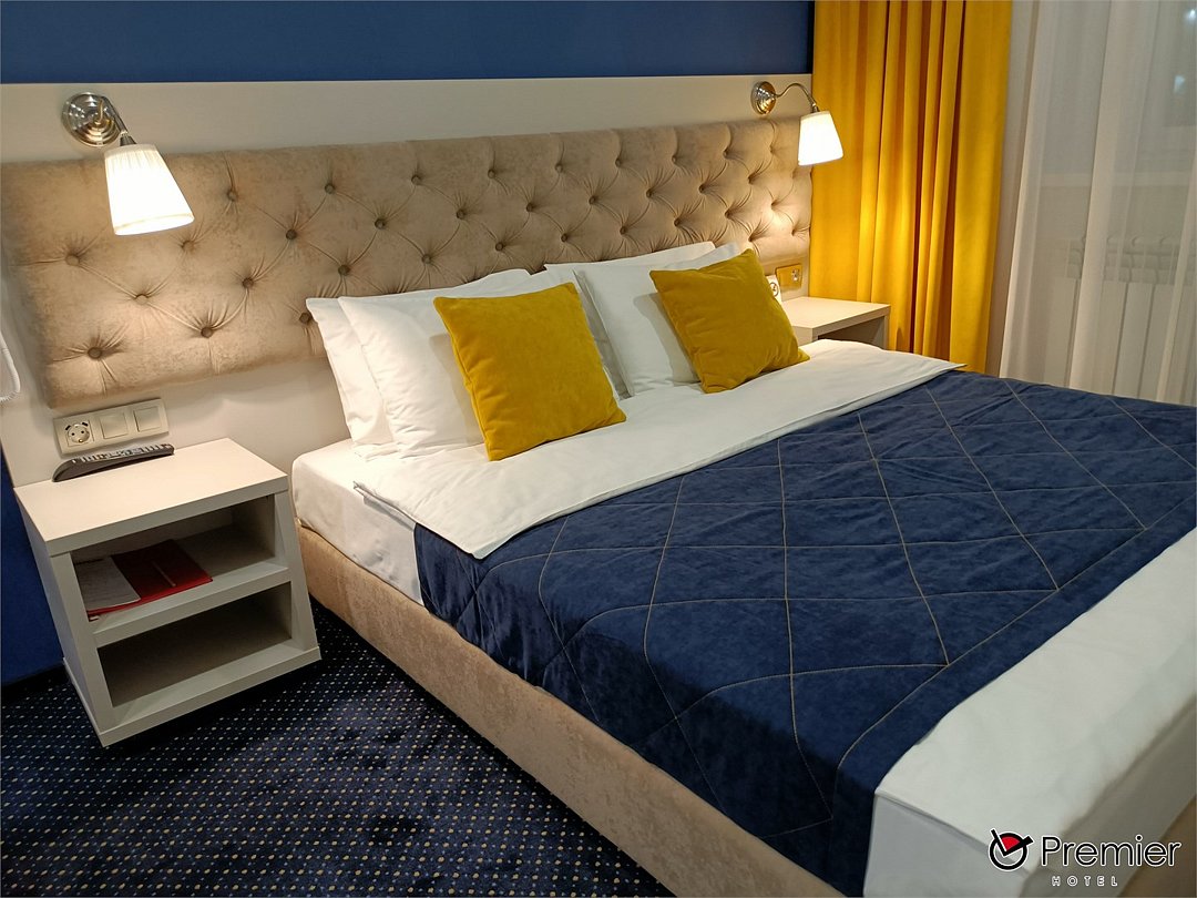 Уютный однокомнатный номер (17 кв.м.) с двуспальной кроватью. В комнате двуспальная кровать, телевизор, чайная станция, холодильник и кондиционер. В ванной комнате в наличии фен, шампунь, гель для душа, жидкое мыло и комплект полотенец. В стоимость проживания уже включен завтрак «шведский стол», беспроводной интернет и охраняемая парковка. Чай, сахар и бутилированная вода обновляются каждый день.Услуги и удобства