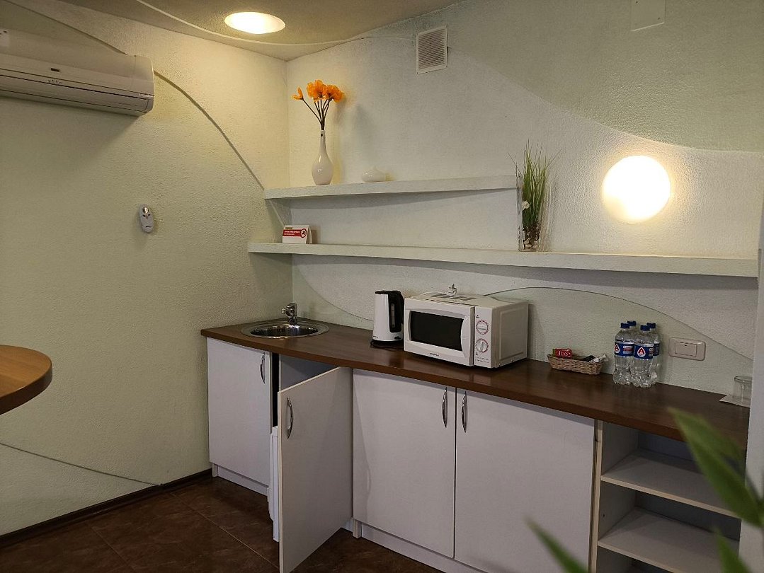 Комфортабельные апартаменты (74,4 кв.м) оборудованы встроенной кухней, просторной и светлой гостиной, уютной спальней с балконом. Достоинствами номера являются большая кровать размером King size, небольшой балкон, а также ванная комната с функций "тёплый пол". Номер оснащен всеми удобствами для комфортного пребывания. Номер идеально подходит для длительного проживания. В стоимость номера уже включены завтрак «шведский стол», беспроводной интернет и парковка с видео наблюдением.Услуги и удобства