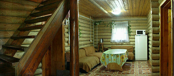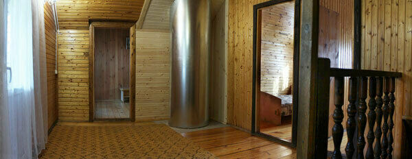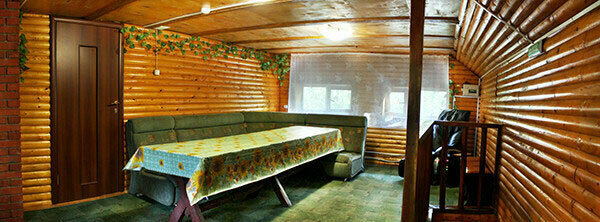 Банкетный зал на первом этаже, кухня, 5 комнат отдыха, душ, туалет на улице.