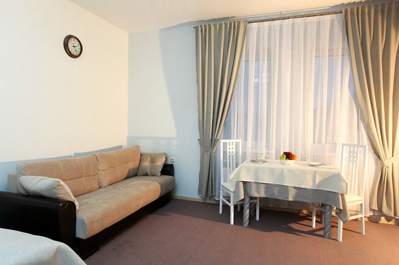 Путешествие с паройЗамечательный отельВыбирали с мужем отель в нужном для нас районе.Все понравилось.Если сравнивать номер с отелем в Турции 5 звёзд, то отличие только в отсутствии балкона и одноразовых ванных принадлежностей (шампунь,гель для душа и мыло есть).Полотенца и постельное бельё чистое.Имеется фен,чай,кофе,сахар,стаканы,минеральная вода без газа,одноразовые тапочки.Завтрак,конечно,не шведский стол,но очень вкусный и сытный.На ужин нам предложили манты и салат летний за 300 рублей. Манты домашние,не полуфабрикаты. Цена,я считаю небольшая.В Макдональдсе отдадите те же деньги за непонятно что.Однозначно,я рекомендую это отель!Если есть время ,не далеко есть сосновый парк.Обязательно посетите его.