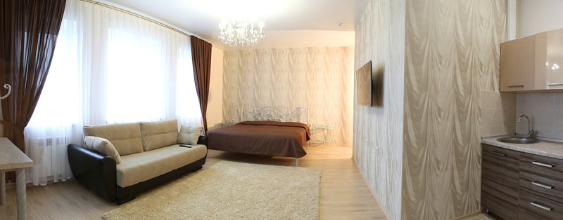 Короткий отпуск с друзьямиОтличный гостевой дом.Палладиум выгодно отличается от аналогичных миниотелей. Остановился здесь случайно и был приятно удивлен, потому что на тот момент опыта посещения мини отелей не было. С приобретением опыта решил поделиться приятным впечатлением от Палладиума. Преимущества: 1. Закрытый двор с парковкой. Совершенно спокойно оставляешь автомобиль. Территория под контролем видеонаблюдения у консьержа. 2. В номерах идеальная чистота (на входе просят одеть бахилы). 2. Номера отделаны по стандарту гостиниц: свет у кроватей с отдельными выключателями, холодильник (маленький). 3. В прекрасно отделанной и абсолютно чистой ванной встроенный фен, мыло, шампунь, гель для душа. Всё в больших флаконах, а не в дурацких разовых пакетиках. Полотенца на своих местах, всё очень удобно размещено. Вся сантехника по высшему разряду. 4. Персонал. Заезжали поздно, но при бронировании администратор Елена поинтересовалась - не захотим ли мы поужинать! Предложила манты и попросила набрать ее за 40 минут, чтобы к нашему приезду они были горячими и готовыми! Манты были очень вкусными, как и завтрак на следующий день. Еду подают прямо в номер к указанному вами времени.