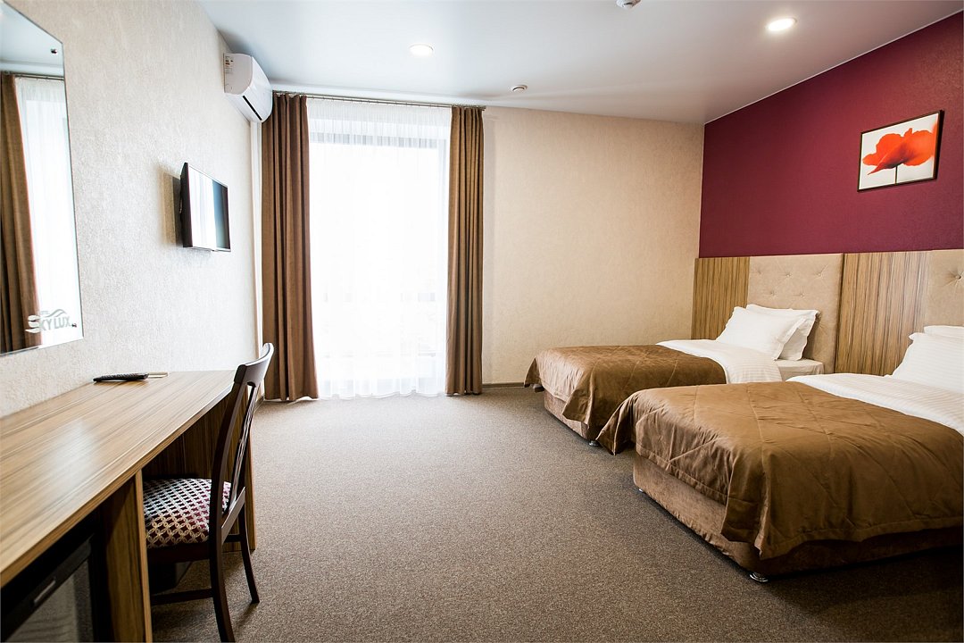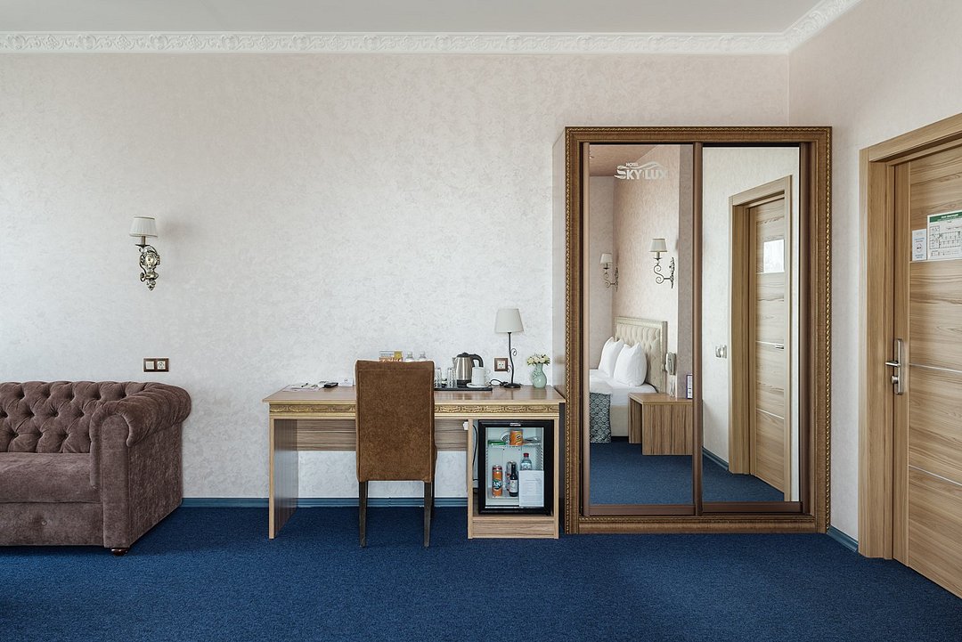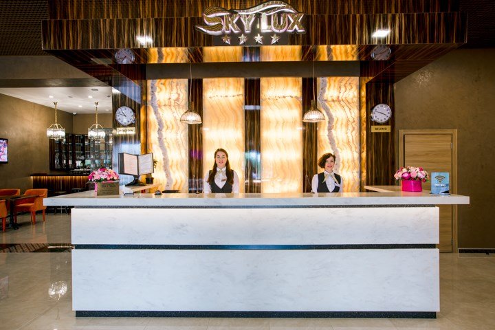 Гостиничный комплекс "Sky Lux Hotel & Spa", который включает в себя: бизнес-отель уровня 4 звезды, кафе-ресторан "Чемодан", круглосуточный лобби-бар, современный конференц-зал и большой охраняемый паркинг.