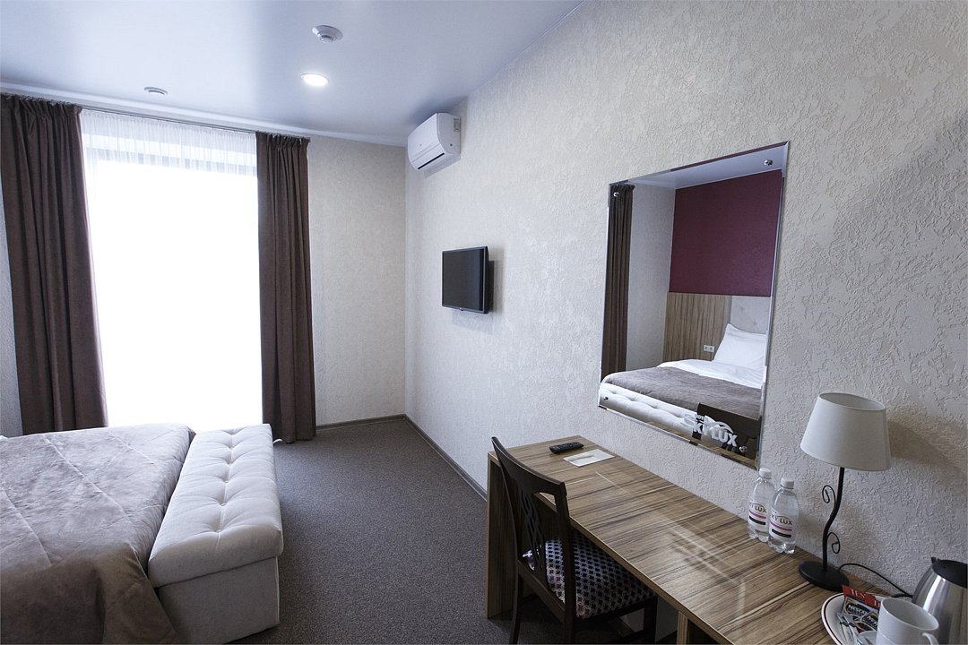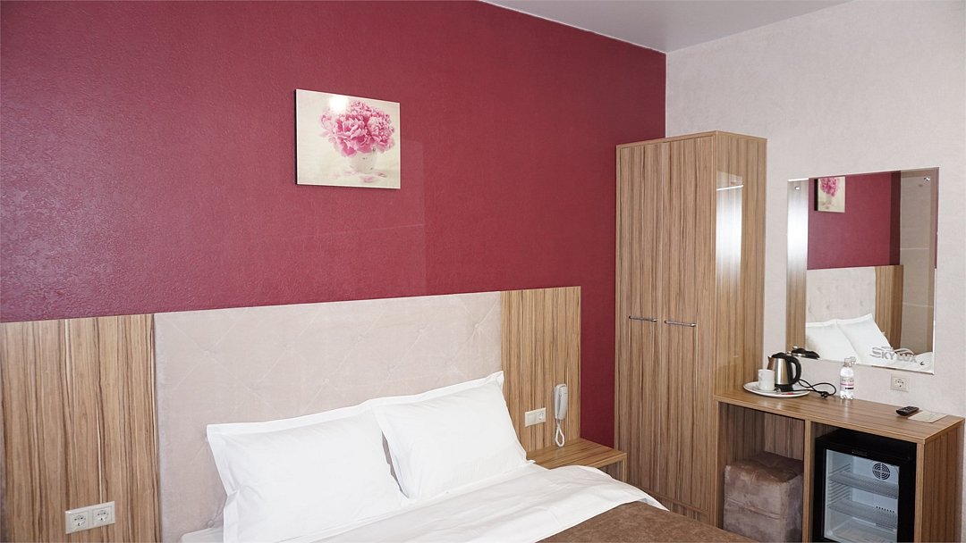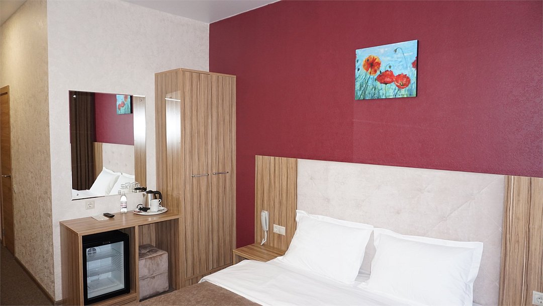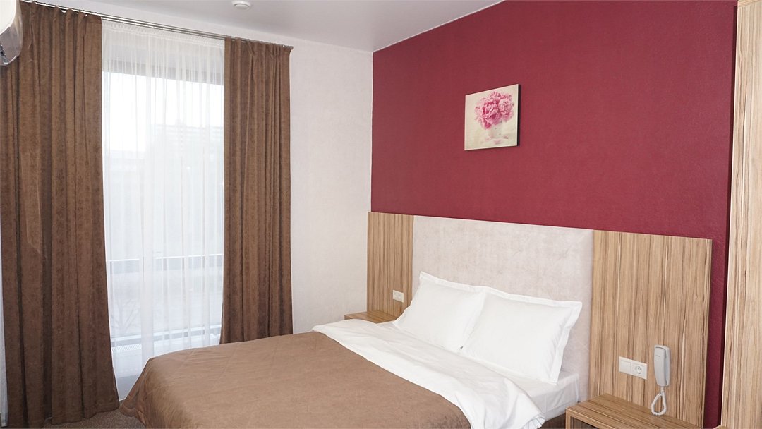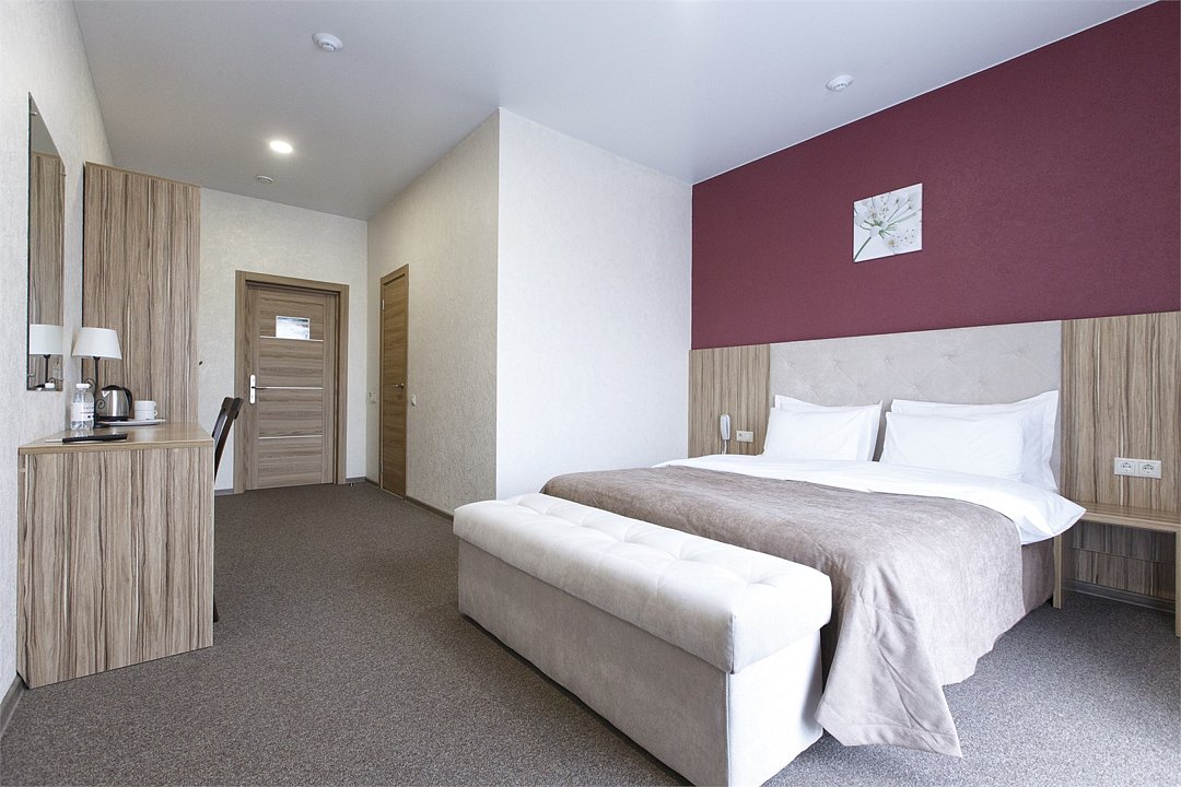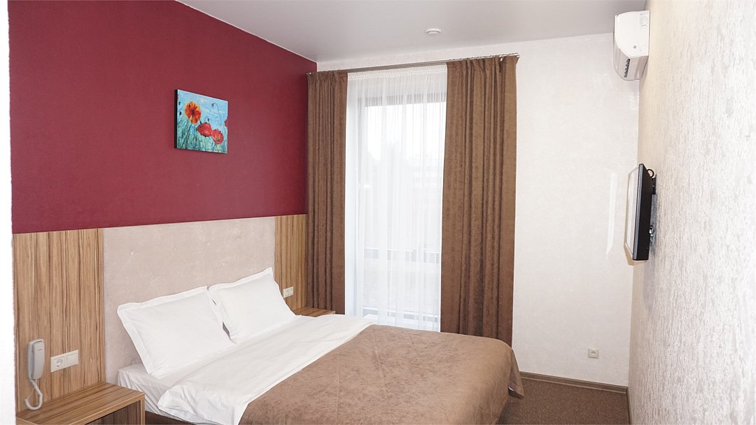 Хорошо оснащенные современные номера с большой двуспальной кроватью по доступной цене. Площадь номера - 18 м2. В номере: беспроводной интернет, холодильник, кондиционер, телефон, кабельное TV, мини-бар, набор для приготовления чая/кофе, сейф, душевая кабина, фен, тапочки. Курение в номере запрещено.Услуги и удобства