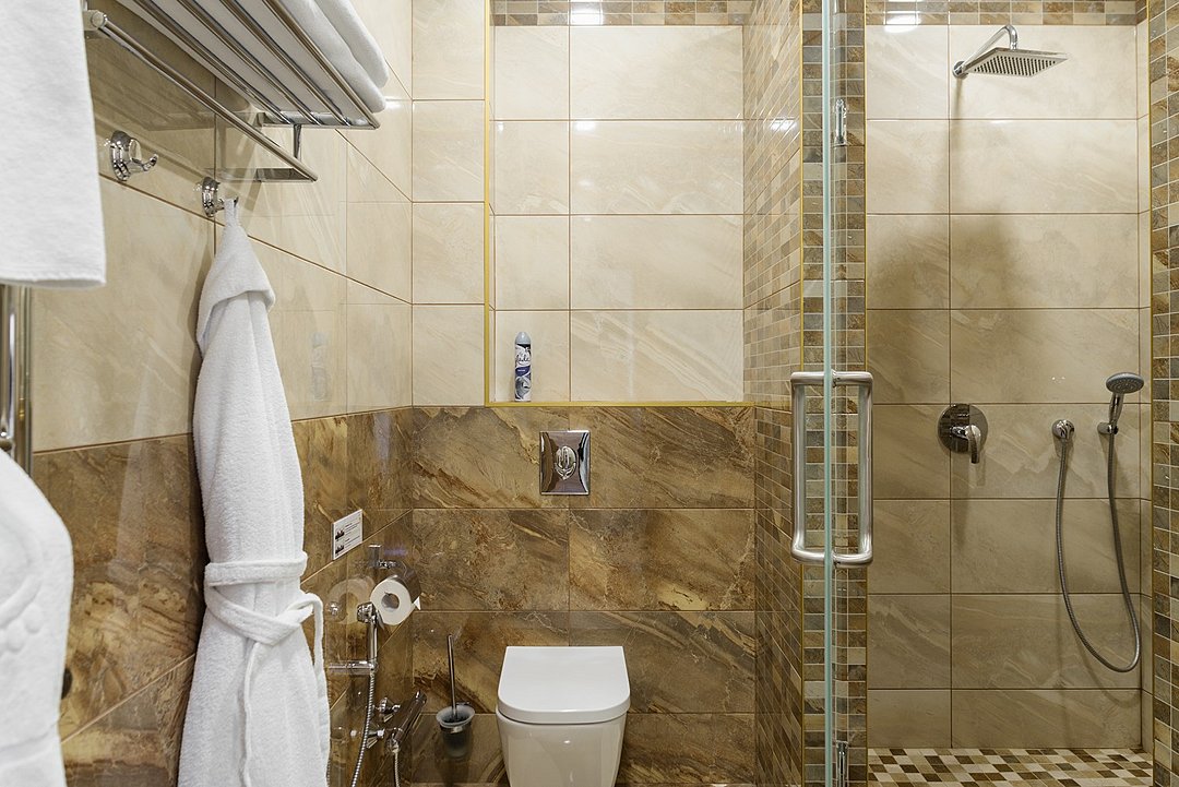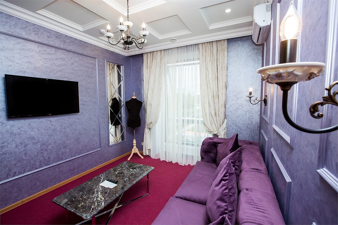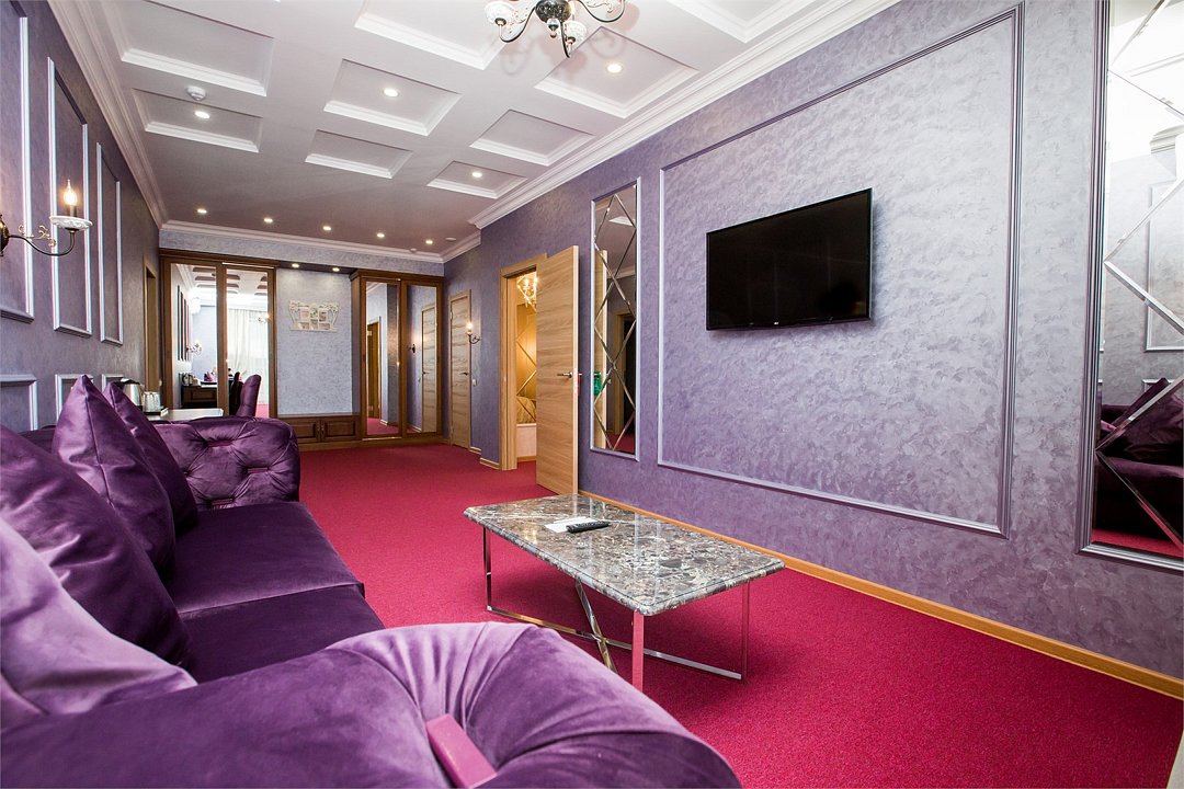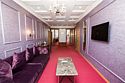 Роскошный просторный двухкомнатный номер площадью 48 м2, с благородным интерьером в классическом стиле, изысканной мебелью, большой ванной комнатой, украшенной мрамором и оснащенной элитной сантехникой. В номере: беспроводной интернет, холодильник, кондиционер, кабельное TV, телефон, мини-бар, набор для чая и кофе, сейф, фен, тапочки, халат и мини-парфюмерия. Курение в номере запрещено.Услуги и удобства