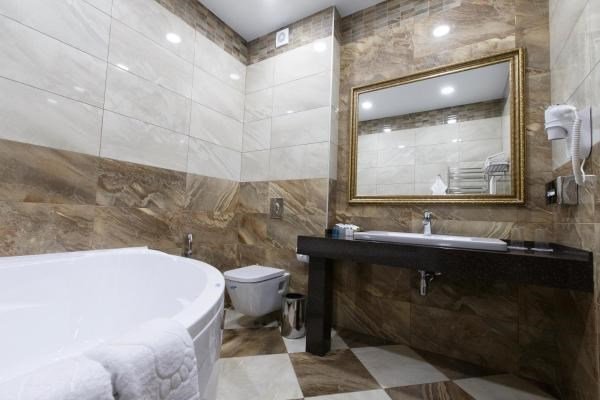 Интерьерный однокомнатный люкс с большой ванной. Подходит для размещения от одного до четырёх гостей. В номере большая двуспальная кровать, телевизор, сейф, а также диван для размещения до двух гостей включительно. Для Вашего удобства: кондиционер, внутренний телефон, бесплатный Wi-Fi, , мини-бар включен в стоимость, чайная станция. В ванной комнате: угловая ванна. Предоставляется комплект одноразовых туалетных принадлежностей: мыло, гель для душа, шампунь-кондиционер, зубной набор, а также бутилированная вода, халаты, тапочки. Мы заботимся о комфорте наших гостей, поэтому в номере только качественная мебель и оборудование. Курение в номере запрещено.Услуги и удобства